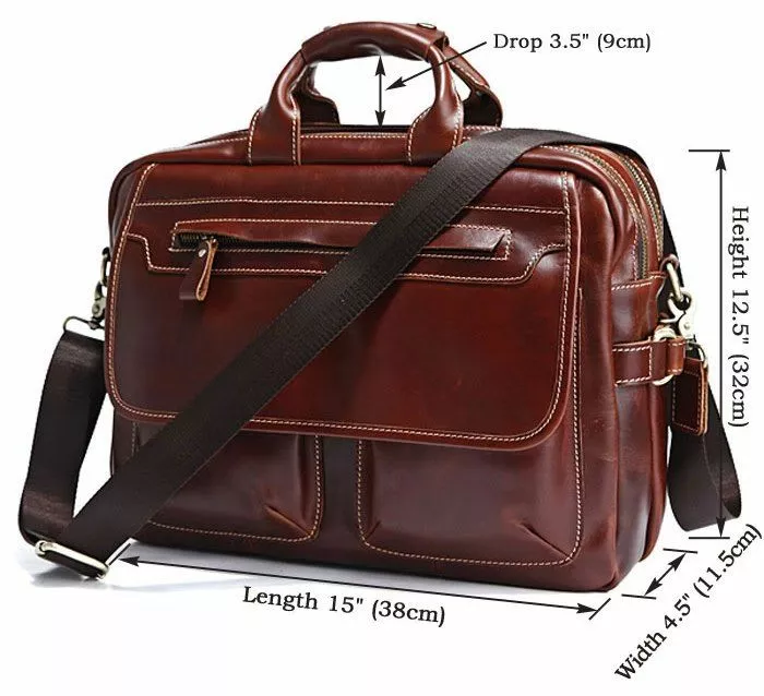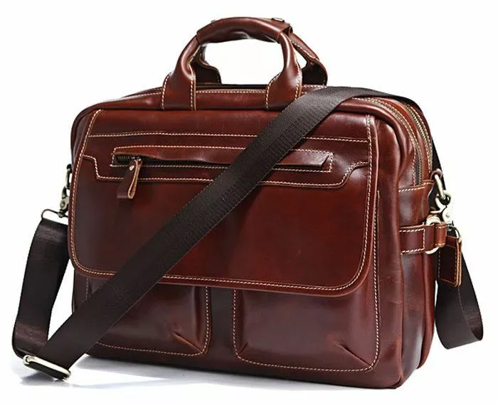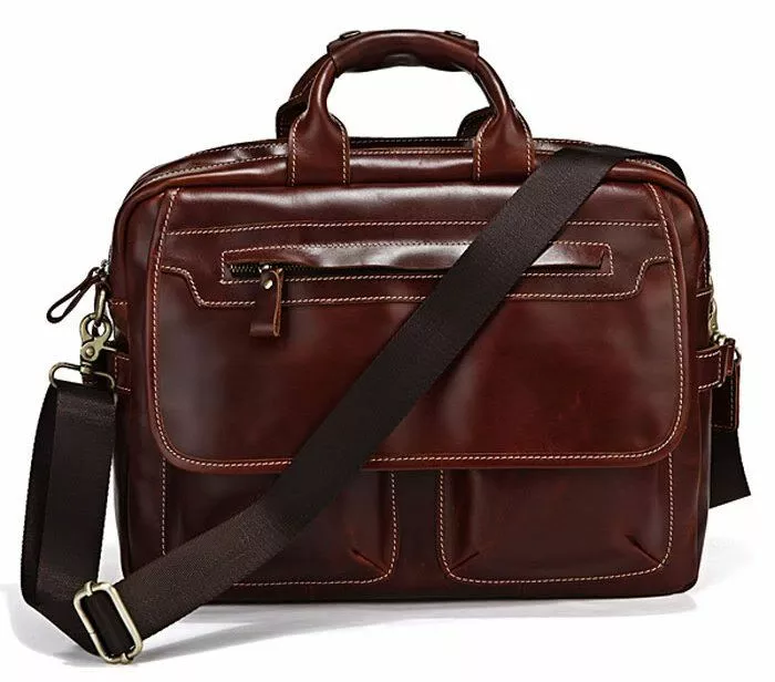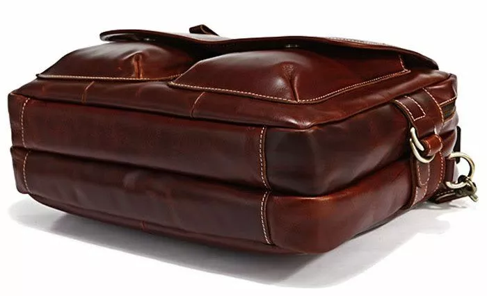 Если Вы стильный, уверенный в себе мужчина, то Вам, несомненно, нужно приобрести такую сумка. Аксессуар обладает практичность, удобством и функциональностью. Цвет фурнитуры: медь. На лицевой стороне портфеля расположено отделение на молнии, а под клапаном на 2-х магнитных кнопках – 2 накладных кармана. На задней внешней стороне аксессуара находится карман на молнии. Портфель можно носить в руке при помощи удобных кожаных ручек, а также через плечо (в комплекте имеется съемный, регулируемый плечевой ремень).