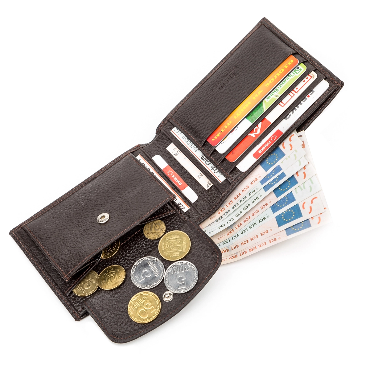 Коричневое мужское портмоне, из натуральной фактурной кожи,