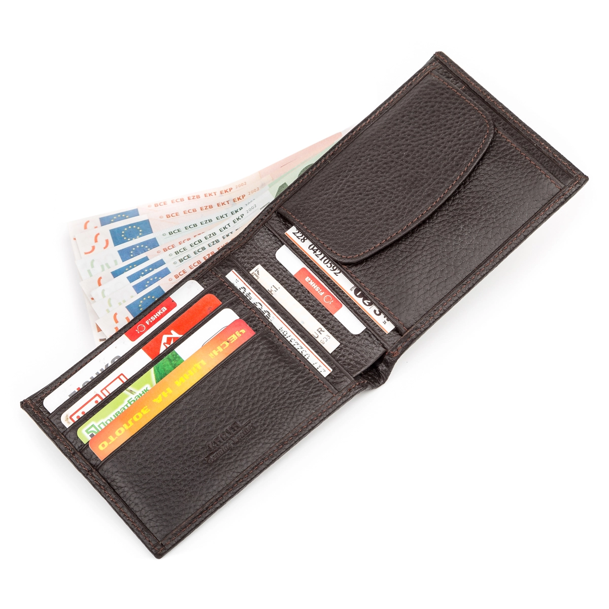 Коричневое мужское портмоне, из натуральной фактурной кожи,