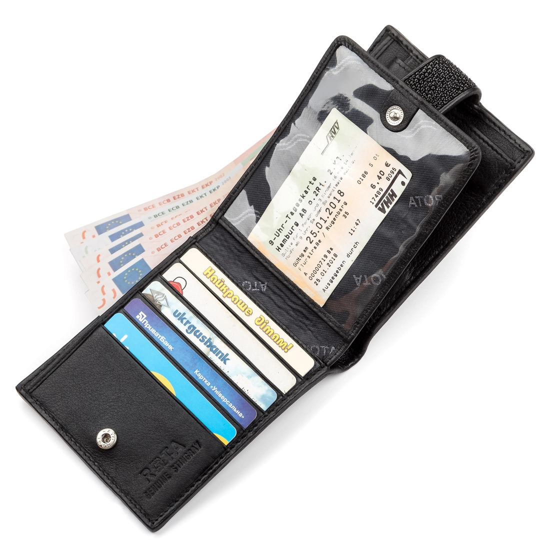 - два больших отделения для купюр;