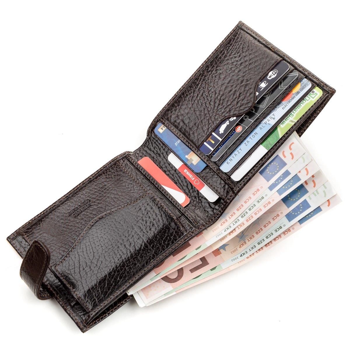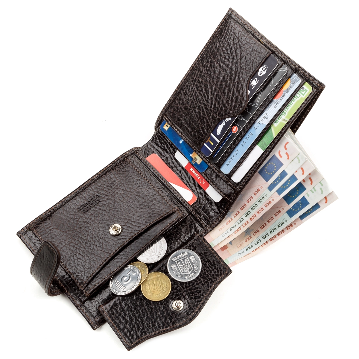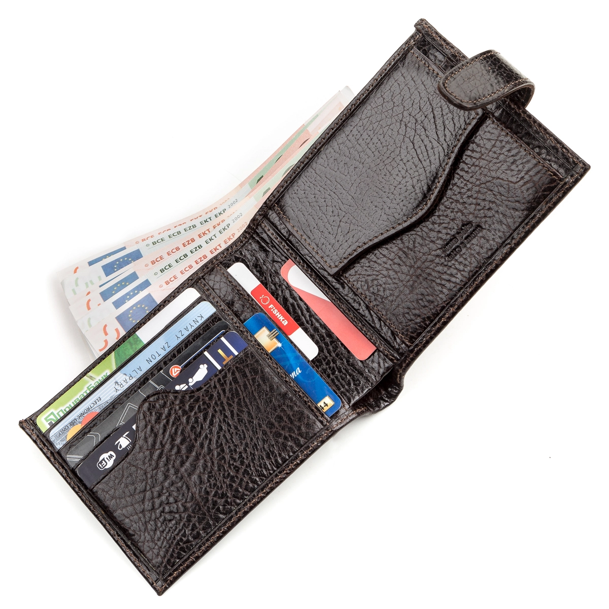 Красивое портмоне, из натуральной фактурной кожи, больше известной как “флотар”. В аксессуаре использована качественная и стильная фурнитура. Изделие упаковано в фирменную коробочку, так что вам не придется думать, во что упаковать свой подарок.