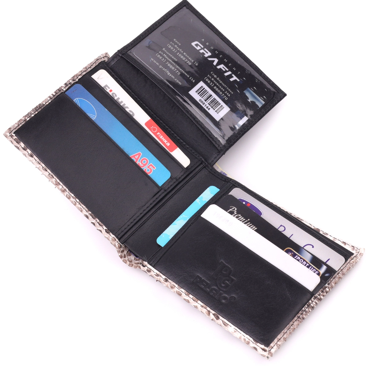- 8 ячеек для кредитных карточек (две из них под прозрачной