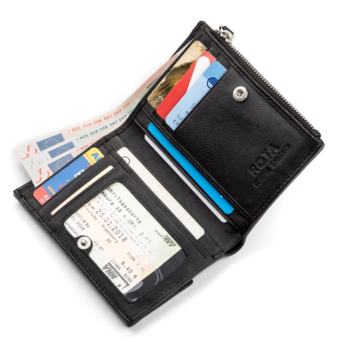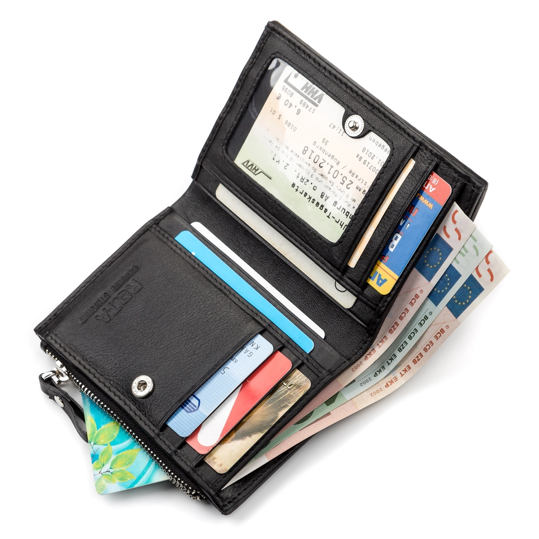 - 5 ячеек для кредитных карточек (одна под прозрачной пленкой);
