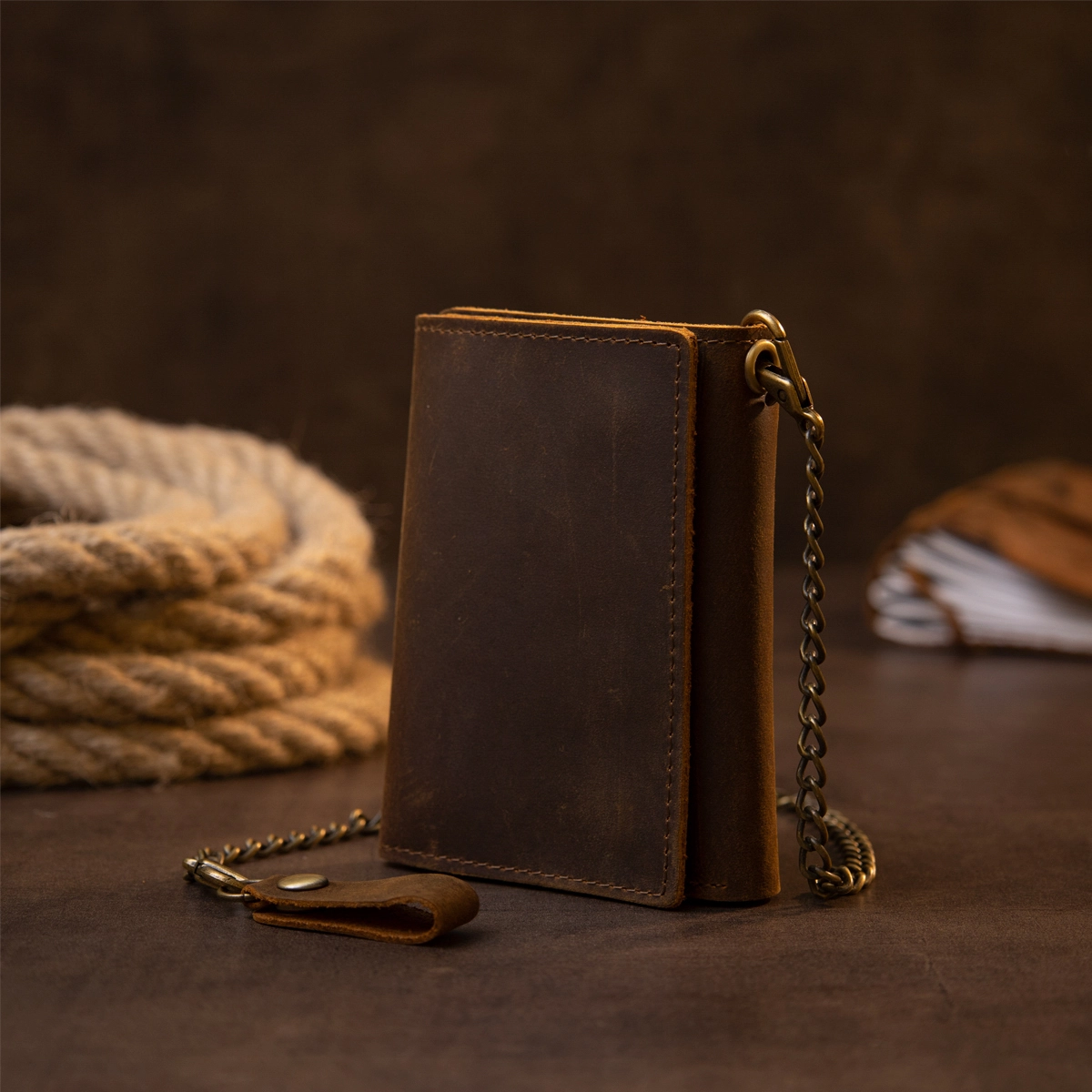 кнопками. Изделие имеет коричневый насыщенный цвет и выполнено в