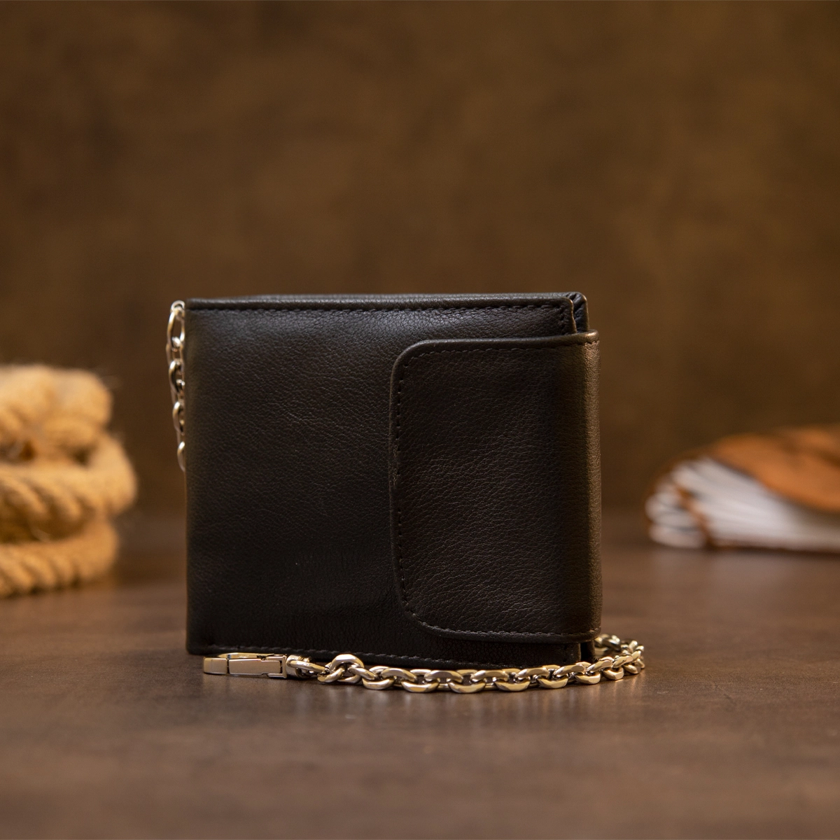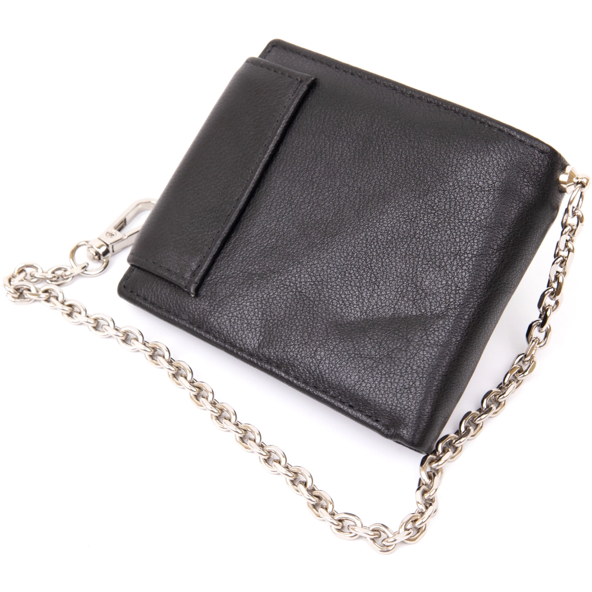 без лишних деталей. Портмоне имеет цепочку с карабином. За нее вы