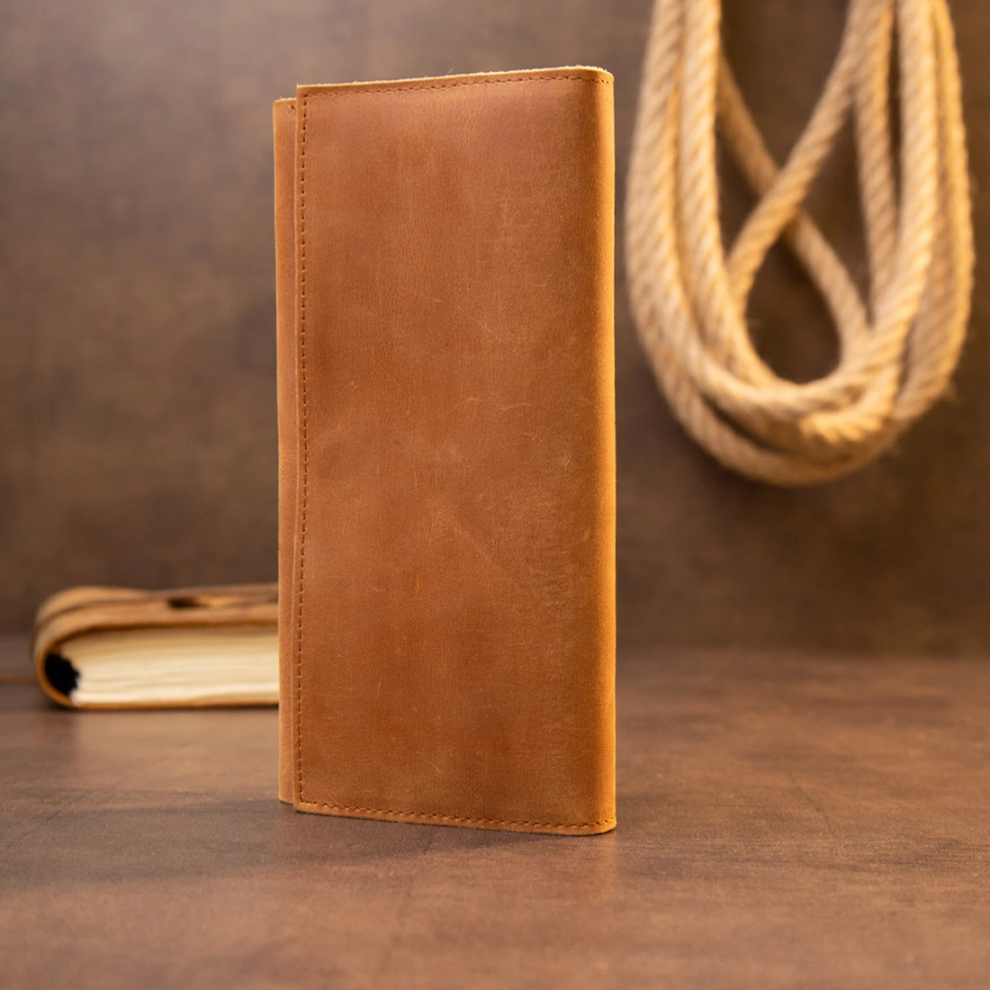 Винтажное горизонтальное портмоне из приятной матовой кожи. Изделие