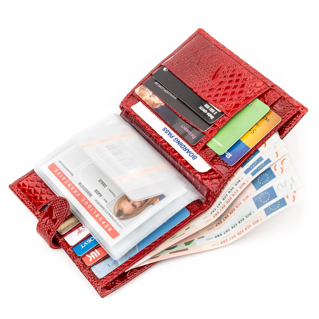 Вместительный женский кошелек красного цвета. Аксессуар выполнен