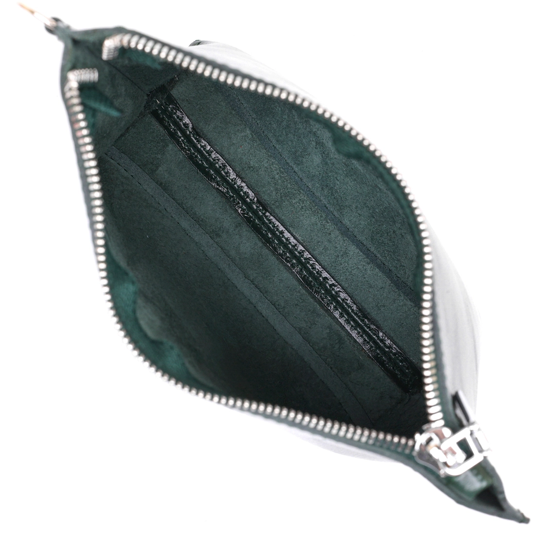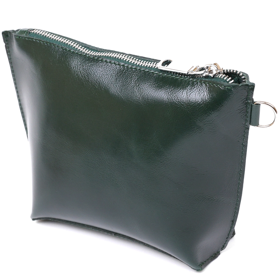 Практичная и удобная косметичка от украинского производителя. Выполнена из натуральной кожи высокого класса с отменными показателями стойкости к износу. Цвет изделия – темно-зеленый с легким переливом, что очень модно в этом сезоне. Фактура – гладкая и приятная на ощупь. Такой аксессуар отлично подойдет на подарок близкому человеку на любой праздник.
