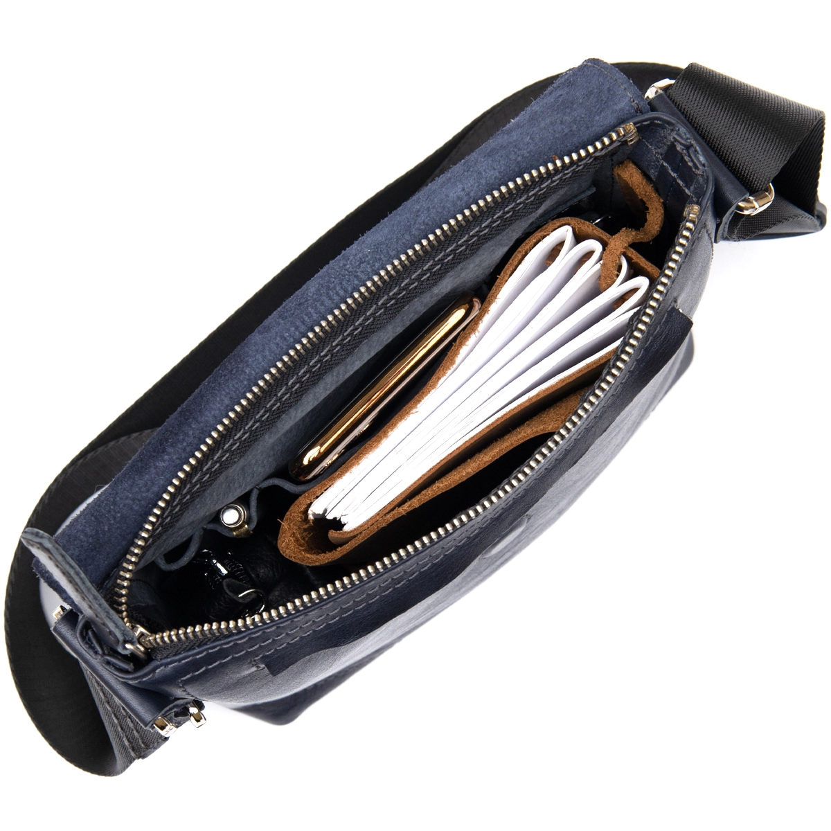 Стильный темно-синий мужской мессенджер из высококлассной