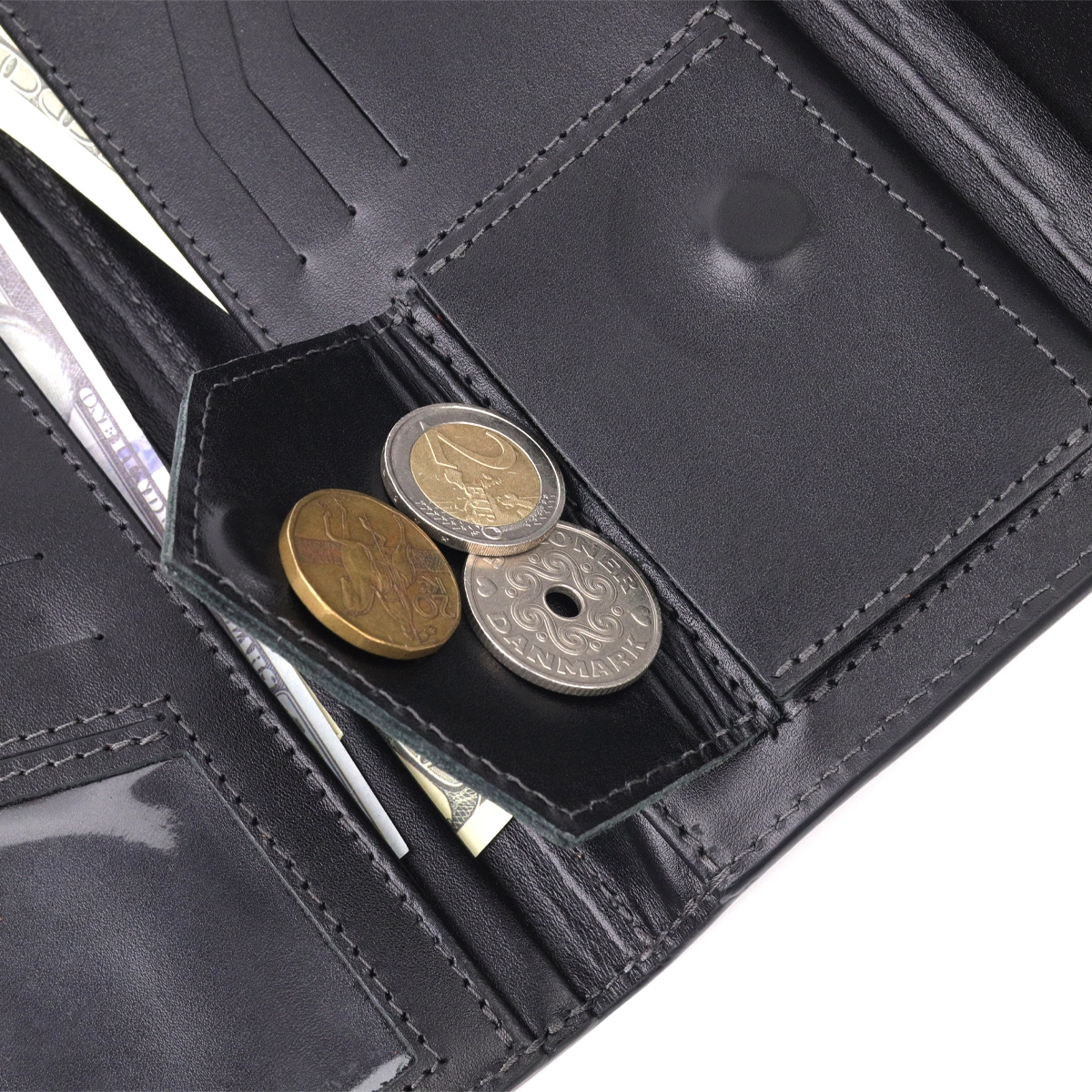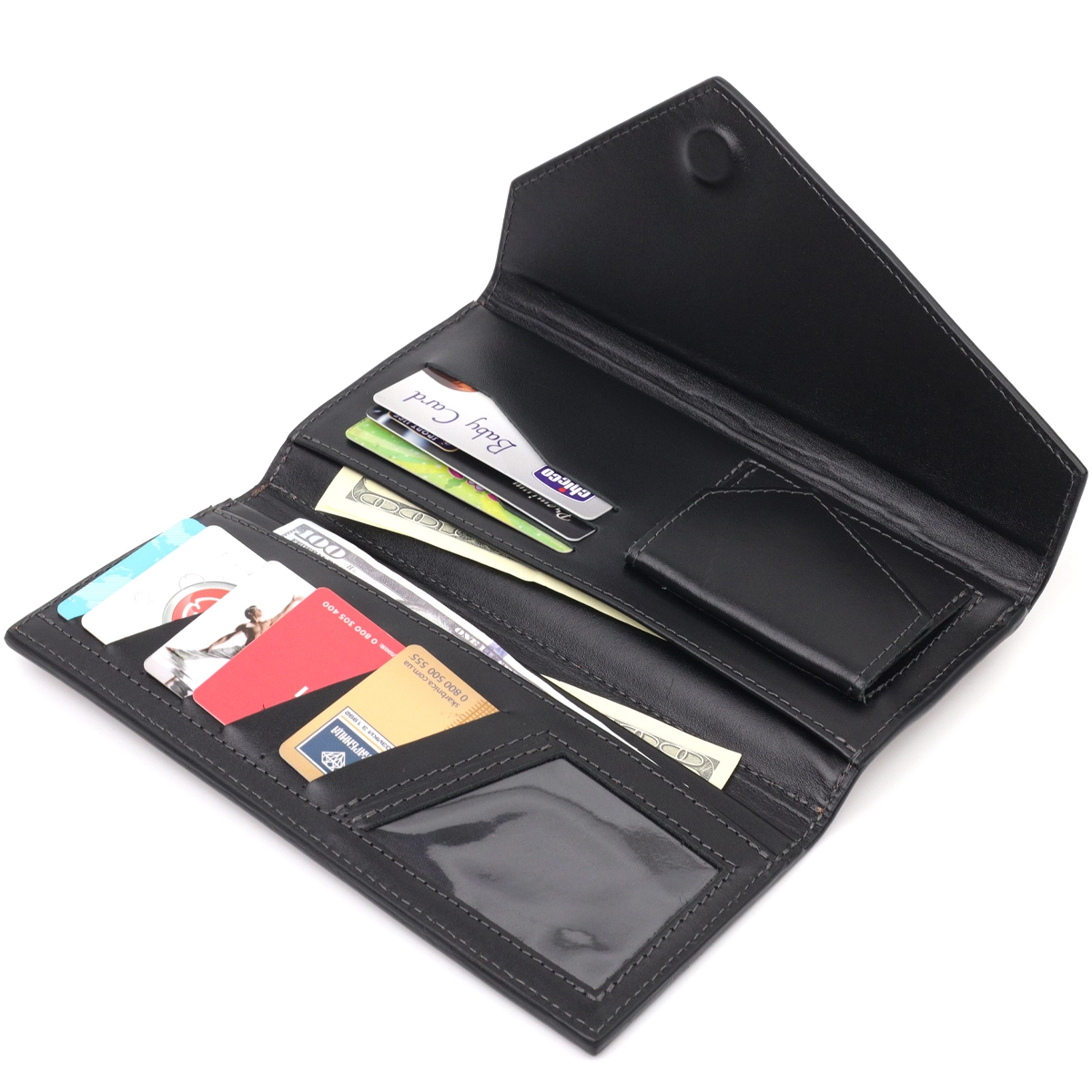- три открытых отделения для купюр;