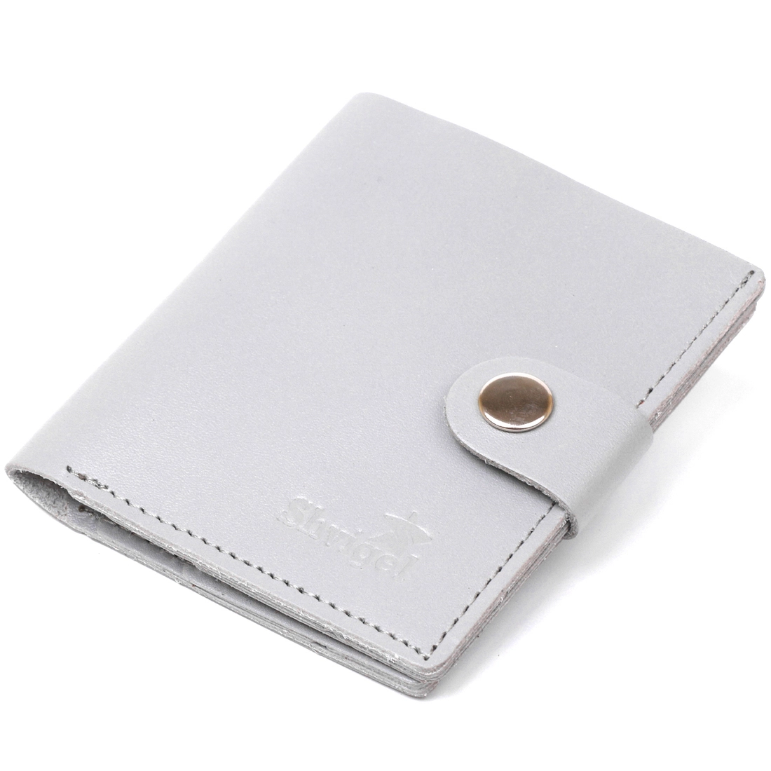 Модное и современное портмоне в два сложения в трендовом сером цвете. Материал изготовления – натуральная кожа высокого класса с улучшенными эксплуатационными характеристиками. Внутри можно разместить купюры и пластиковые карточки. Фактура аксессуара – гладкая и очень приятная на ощупь. Закрывается кошелек на хлястик с кнопкой.