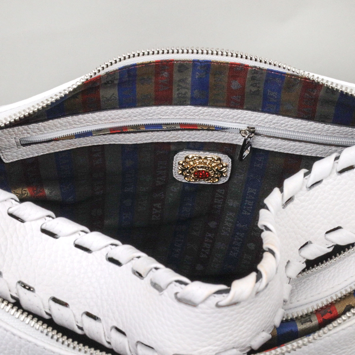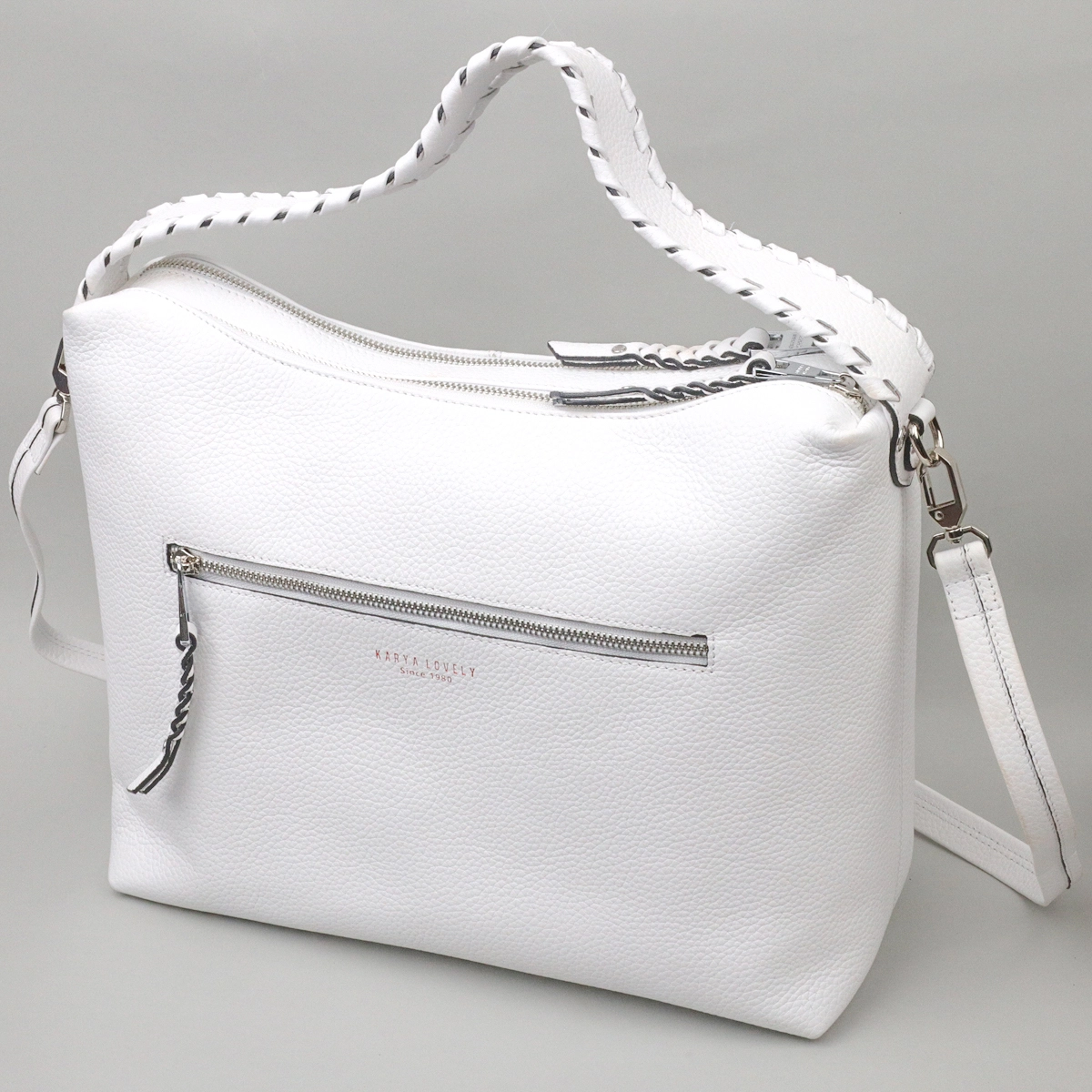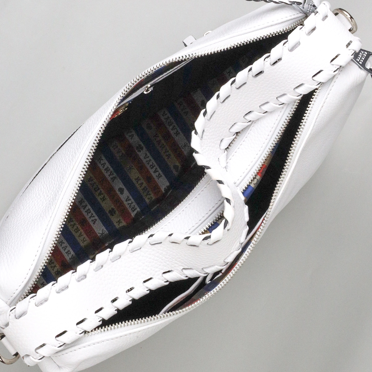 кожи, нежного белого цвета. Сумка вместительная и функциональная в