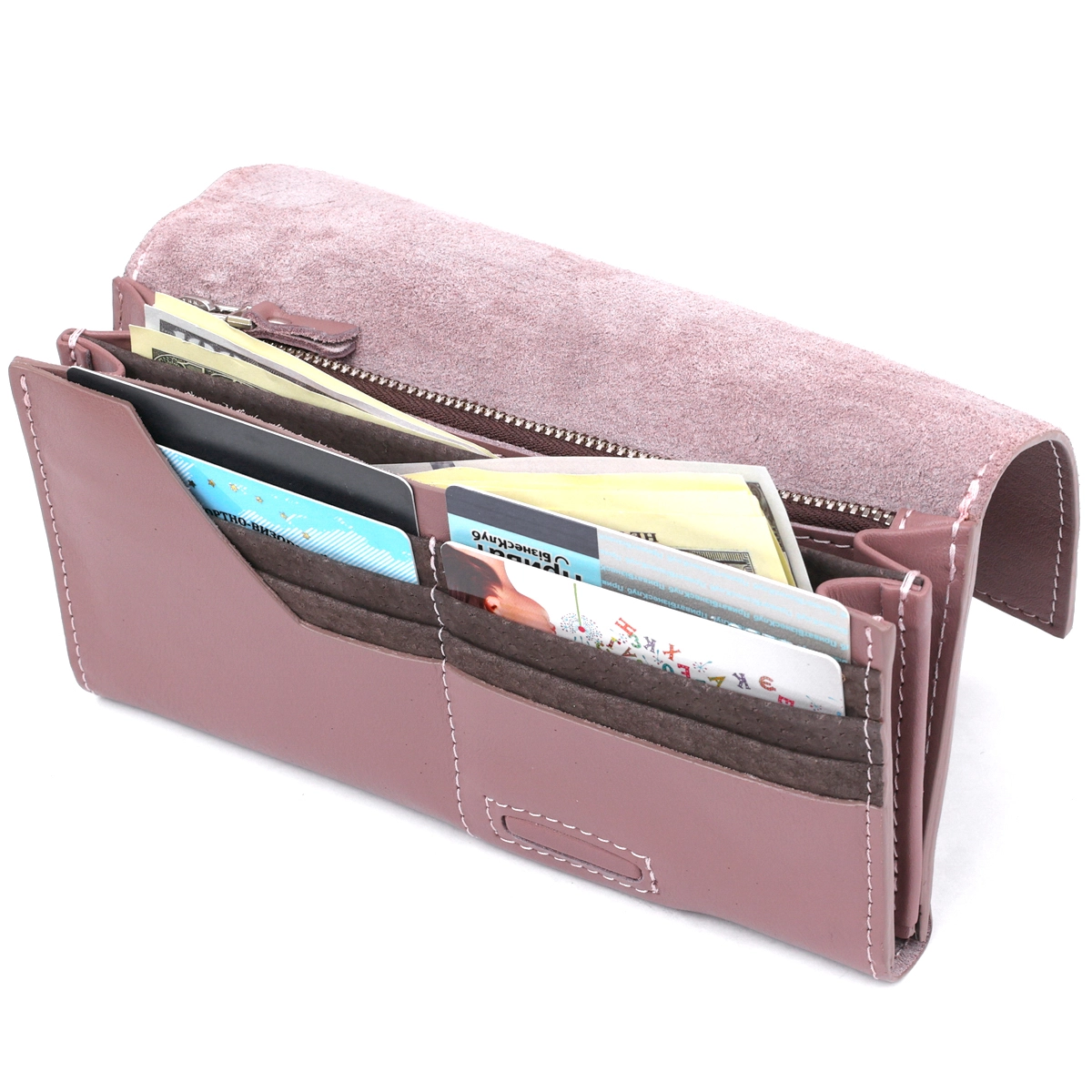 Замечательный женский кошелек от известного производителя в стильном лаконичном дизайне. Выполнен аксессуар из натуральной кожи высокого качества, которая очень мягкая и приятная на ощупь. Цвет изделия – розовый с серым оттенком, фактура – гладкая. Закрывается кошелек с помощью клапана на магните, на практике это очень удобно и практично.