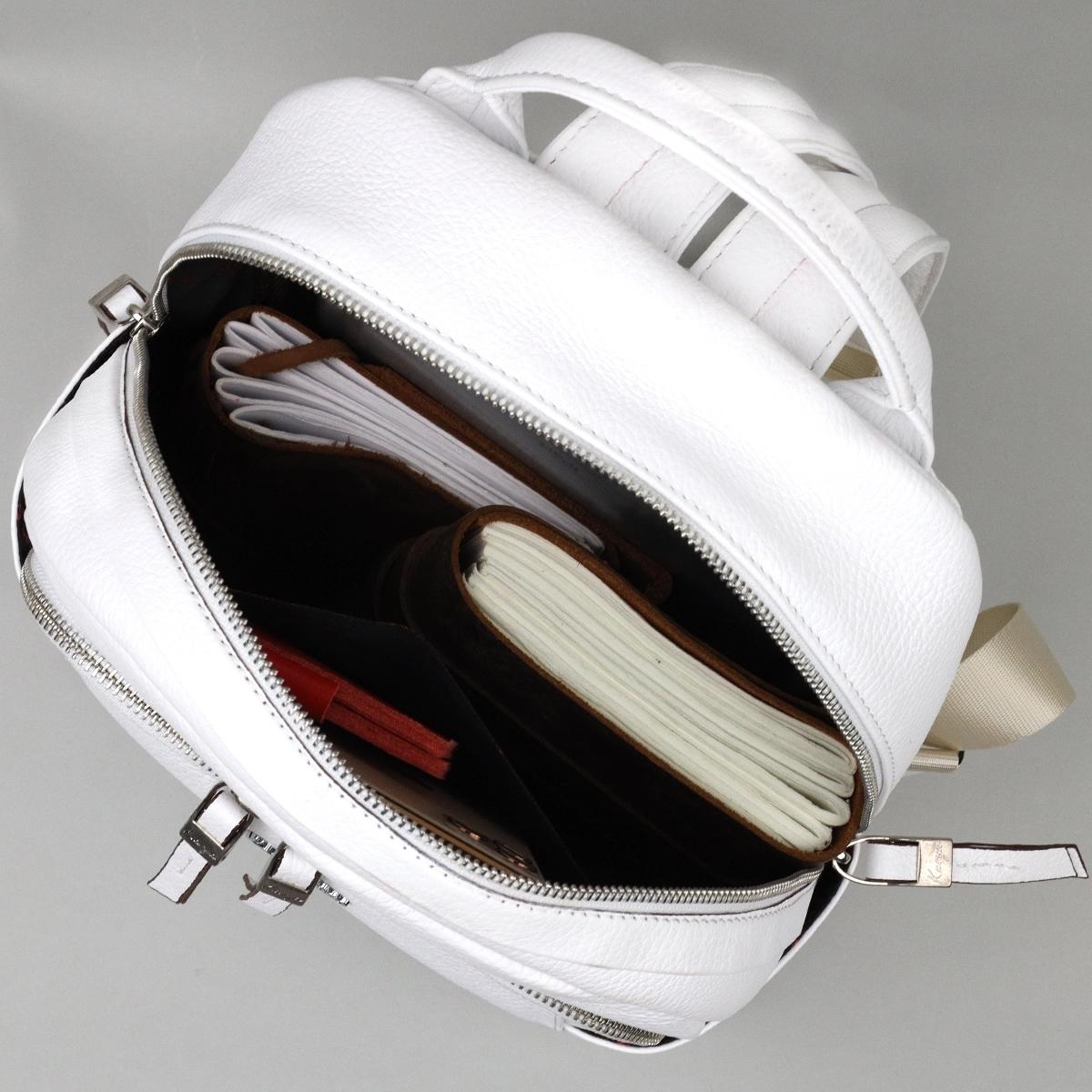 Модный рюкзак из натуральной кожи высокого качества, в белом