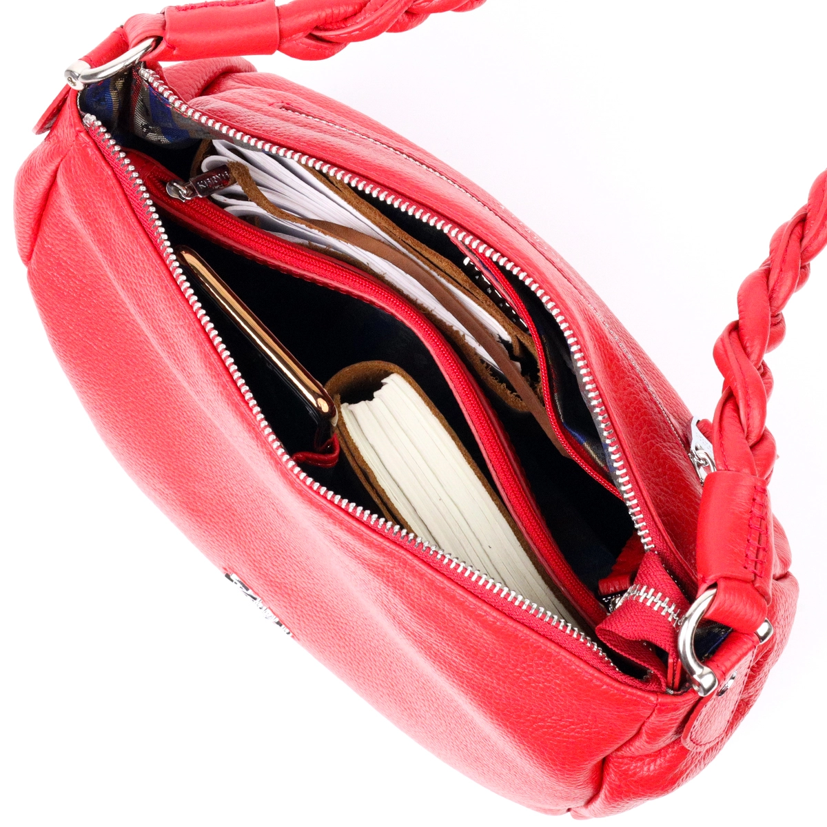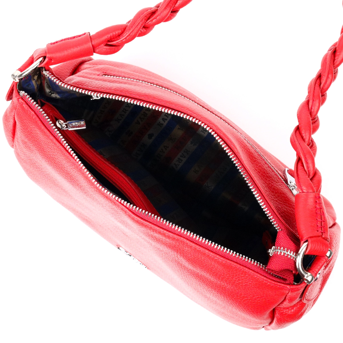 Привлекательная женская сумка из мелкозернистой натуральной кожи, в красном цвете. Сумка функциональна и удобна в эксплуатации, качественная фурнитура не только дополняет стильный дизайн сумки, но и защищает изделие. Изделие имеет прочную подкладку. Аксессуар упакован в фирменный текстильный мешок Karya. Сумка из натуральной кожи всегда будет отличным подарком любой женщине.