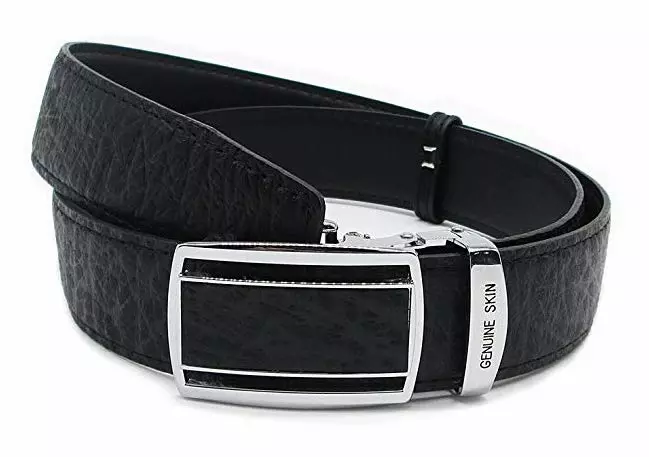 Очень стильный ремень из натуральной кожи, с фартурой под кожу слона. Аксессуар изготовлен на основании из телячьей кожи. Изделие оборудовано съемной пряжкой в классическом стиле, которая декорированная вставкой из кожи, с фактурой под кожу слона. Ремень универсальный, его можно носить как под джинсы, так и под брюки.