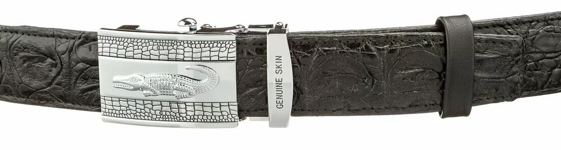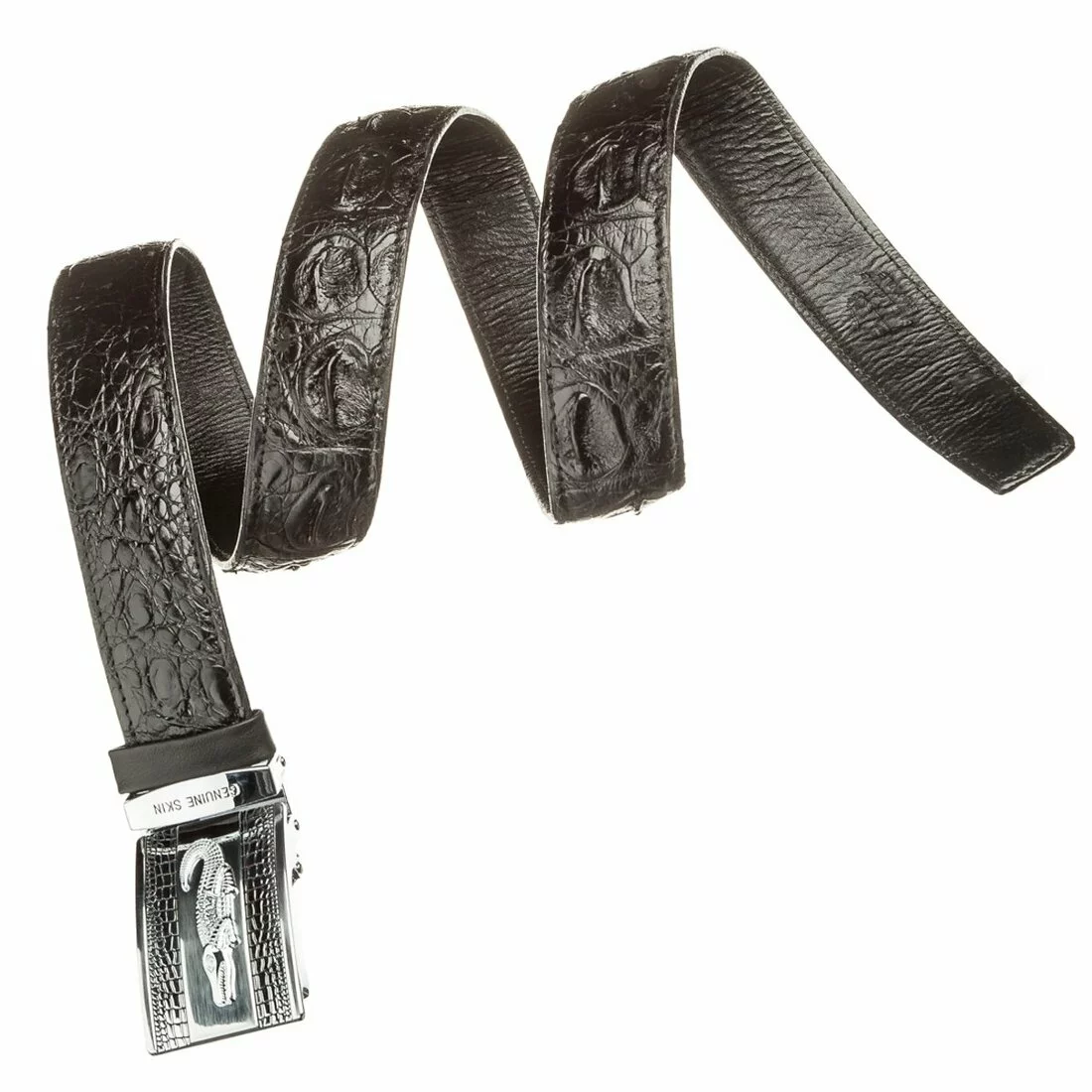 Ремень из натуральной кожи крокодила, изготовленный в классическом стиле. Выглядит очень роскошно и легко дополнит ваш образ и подчеркнет ваш отменный вкус. Идеальный вариант для тех, кто любит дорогие вещи. Ремень прослужит вам далеко не один год. Фурнитура изготовлена из крепкого металла серебристого цвета. Может быть отличным подарком, как для себя, так и для близкого человека.