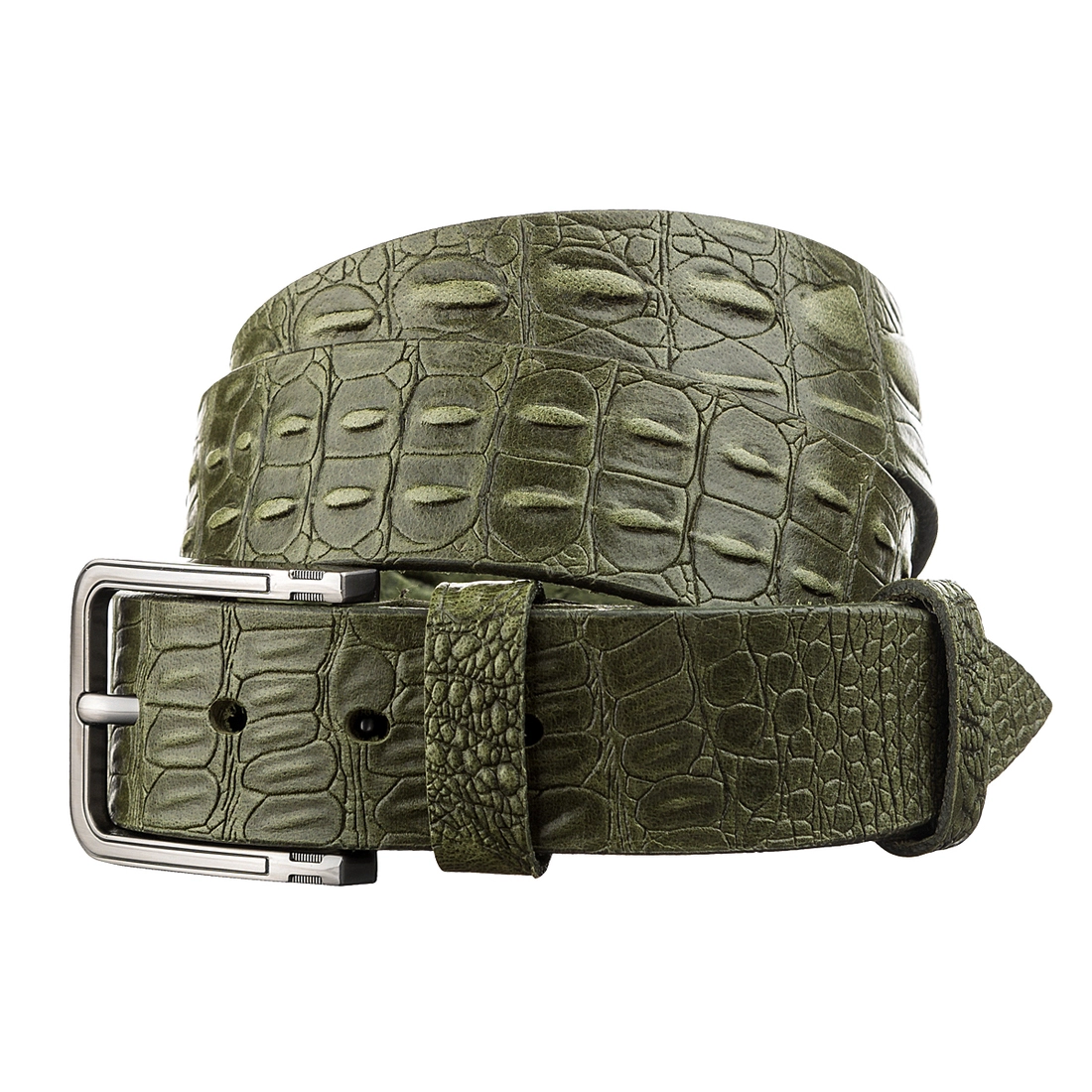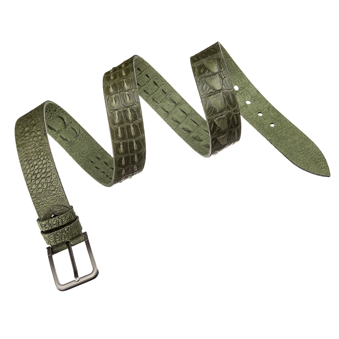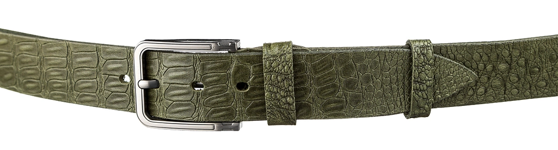 Очень стильный и оригинальный мужской джинсовый ремень из натуральной высококачественной кожи, с фактурой под крокодила. Цвет фурнитуры: темное серебро. Изделие упаковано в красивую коробочку. Кожаный ремень является отличным решением для подарка мужчине к любому празднику.