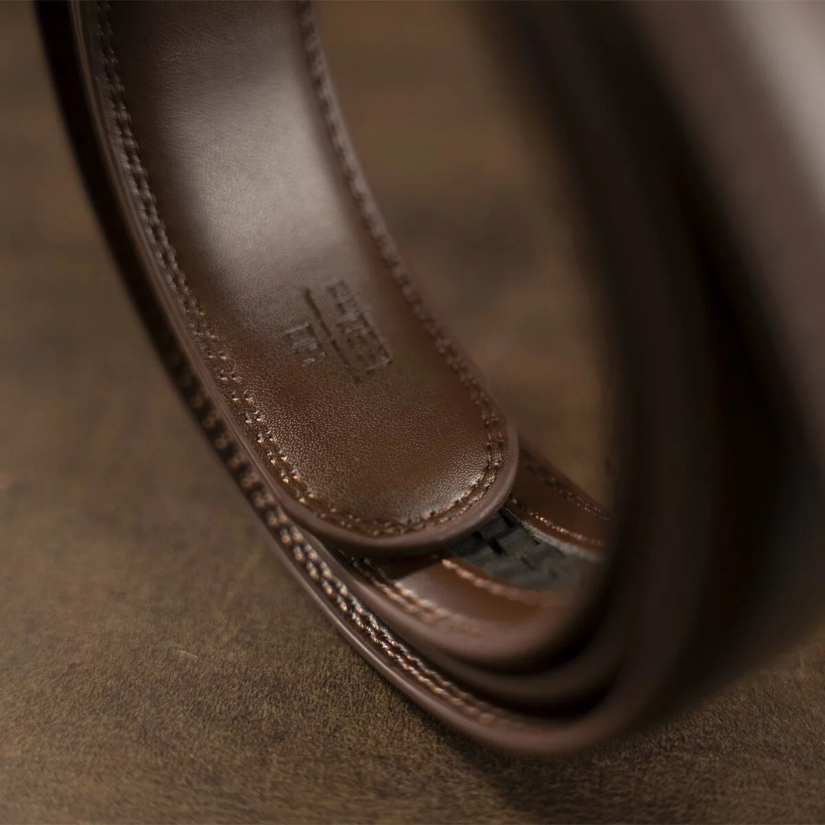 с эффектом старины. По краям ремень дополнен ровной строчкой.