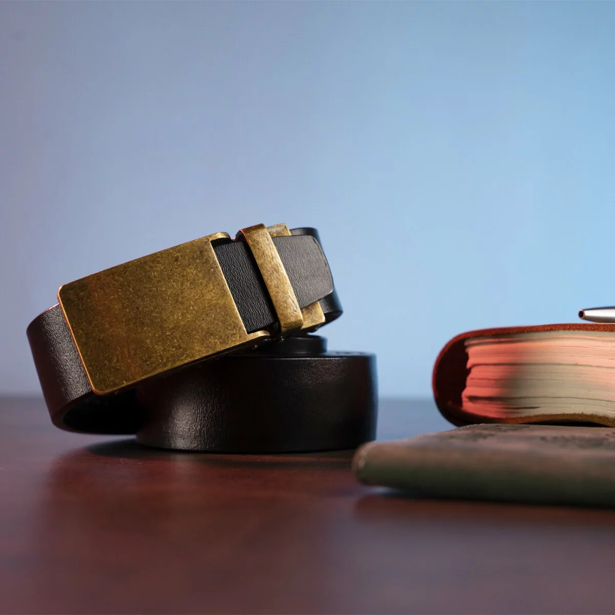 Мужской ремень с ретро пряжкой автоматического типа и дизайна с
