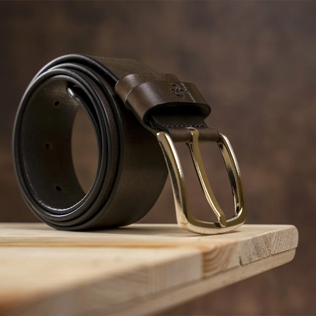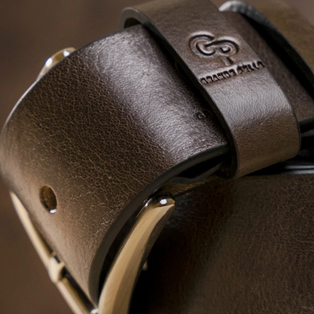 Стильный кожаный ремень приглушенного цвета. Аксессуар будет идеально сочетаться с любой обувью и одеждой. Качественный ремень будет находкой под ваш любой образ. Хороший ремень способен идеально завершить образ и подчеркнуть ваш статус. Модель украинского производства. Дополнен ремешок серебристой пряжкой с закругленными углами. Кожаный ремешок один из самых удачных и нужных подарков для любого мужчины.