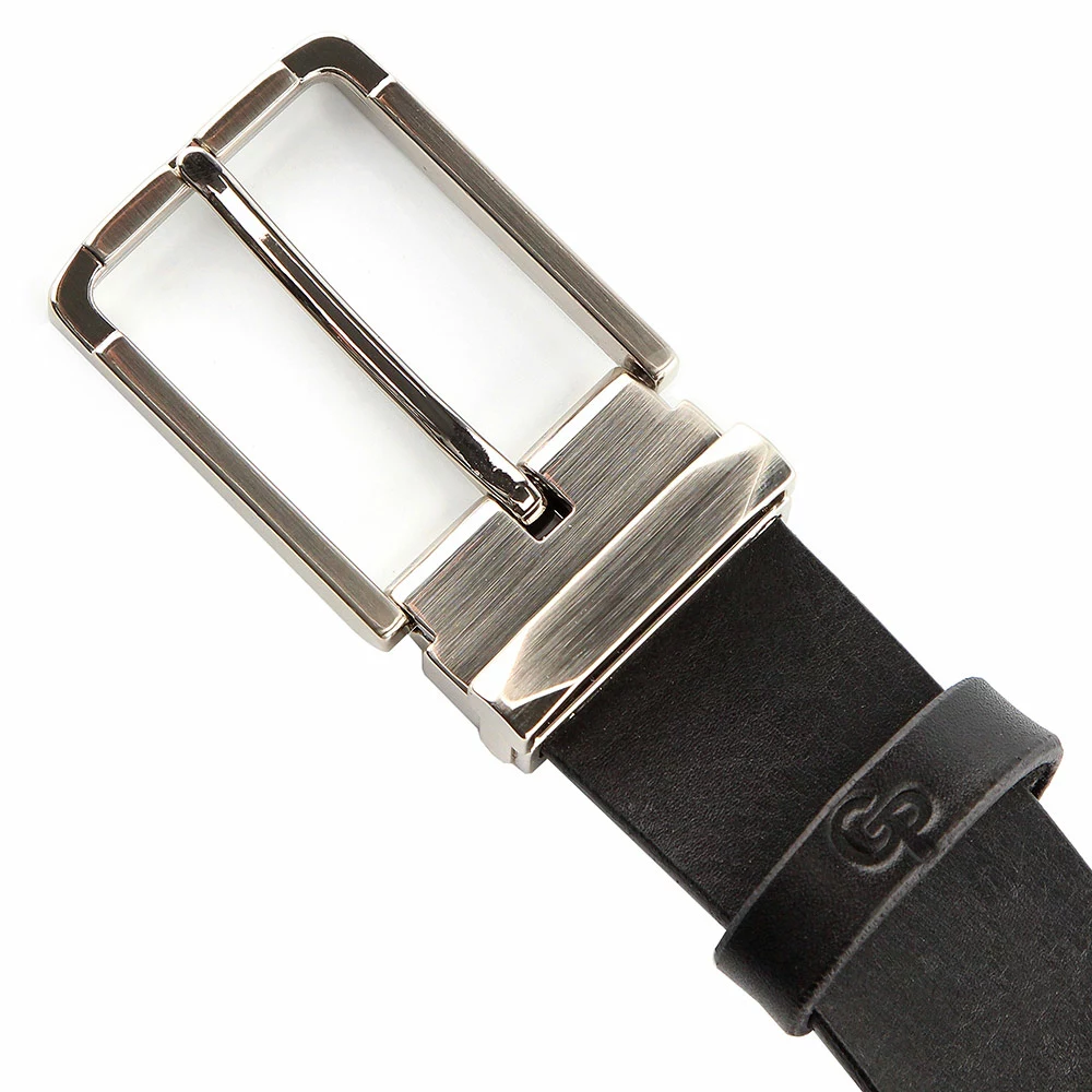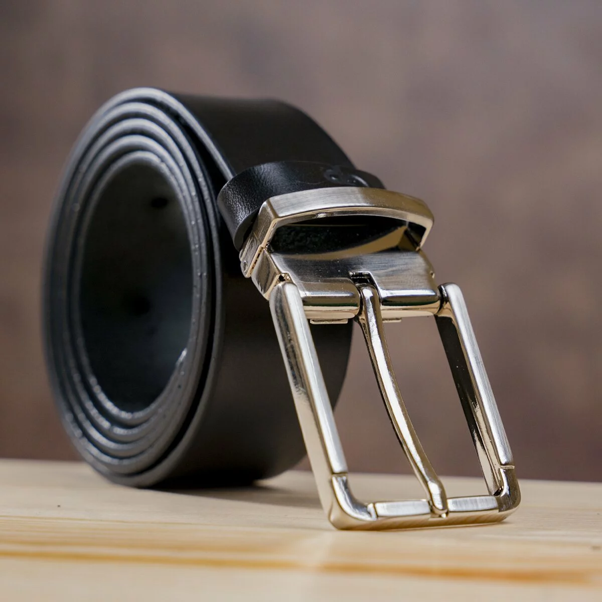 Первоклассный мужской ремень, черного цвета, изготовлен из натуральной кожи высокого качества. Удобный практичный аксессуар, с возможностью регулировки длины, станет замечательным помощником для стильных современных мужчин.