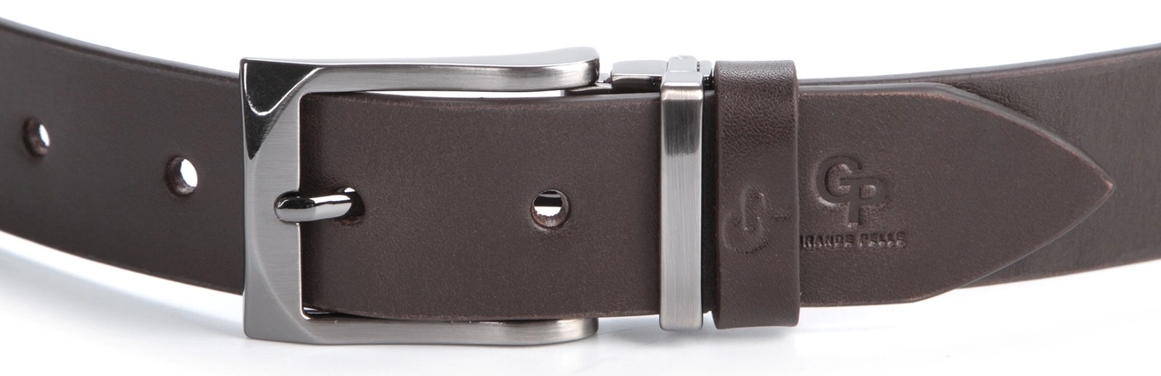 Красивый брючный ремень, изготовленный из качественной кожи благородного шоколадного оттенка. Полотно выполнено в спокойном стиле, без всяческих орнаментов, но при этом изделие не перестает быть интересным и привлекательным. Металлические элементы отлично подобраны и поставлены, поэтому ремень не подведет Вас своим качеством.
