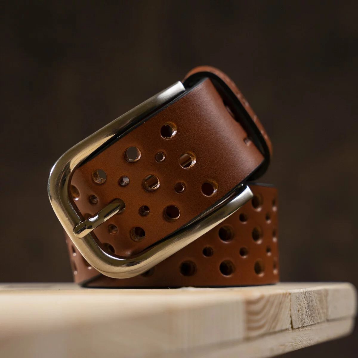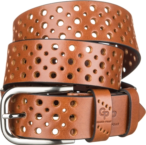 Стильный ремень из цельной итальянской кожи, модель подойдет как мужчинам, так и женщинам. Необычное полотно перфорировано отверстиями разных диаметров, что придает изделию изысканности и неповторимости. Края изделия оформлены черным цветом, что придает ему оригинальности. Производитель, использует исключительно импортную фурнитуру, которая не темнеет, не царапается и не вызывает аллергии.