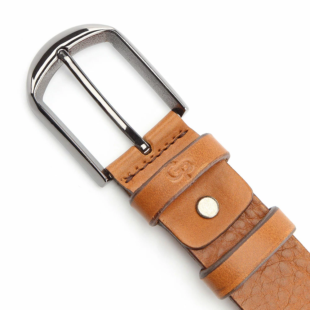 Великолепный мужской ремень изготовлен из высококачественной натуральной кожи. Роскошный внешний вид ему придает светло-коричневый цвет и строгий, сдержанный дизайн. Современный высококлассный аксессуар для стильных и ярких мужчин.