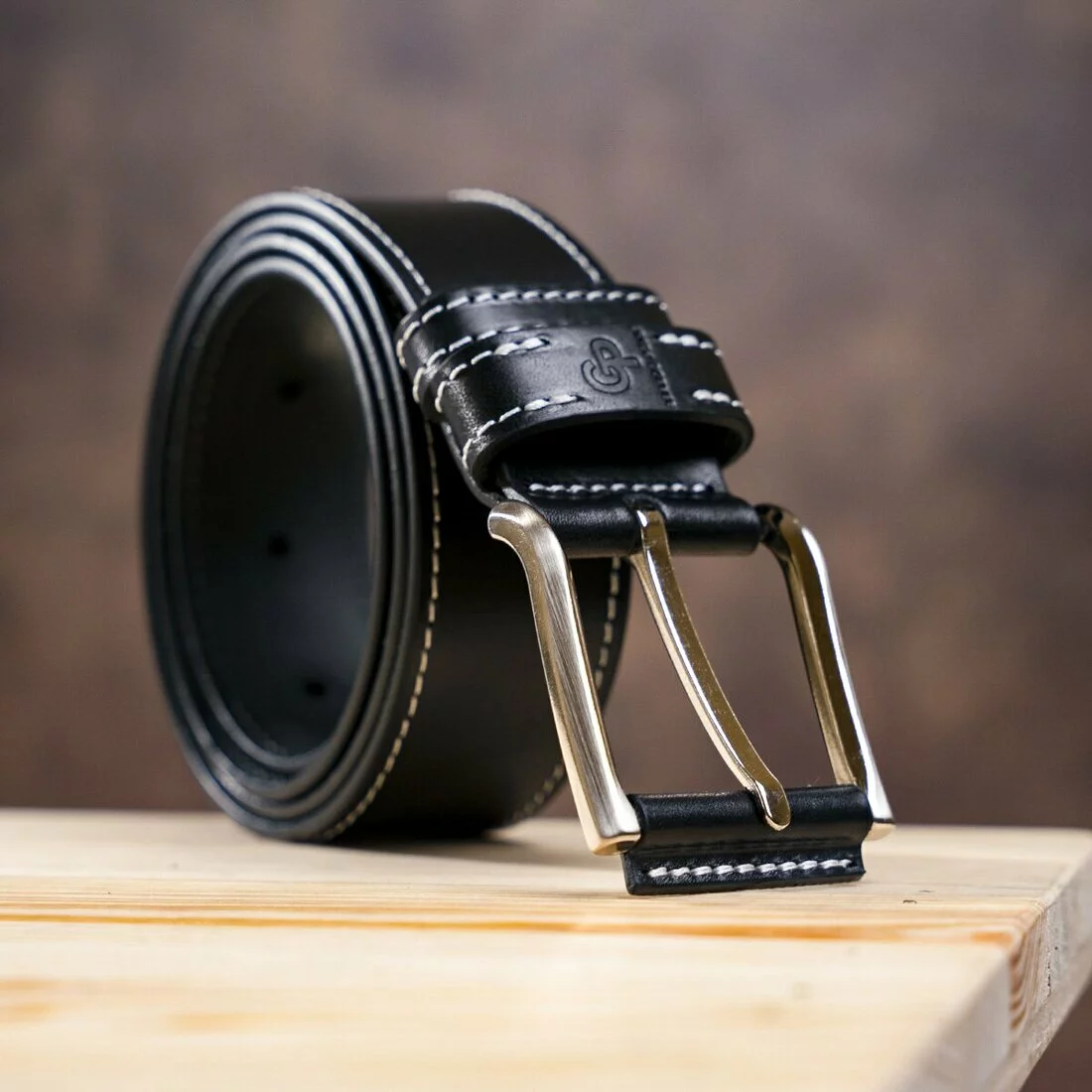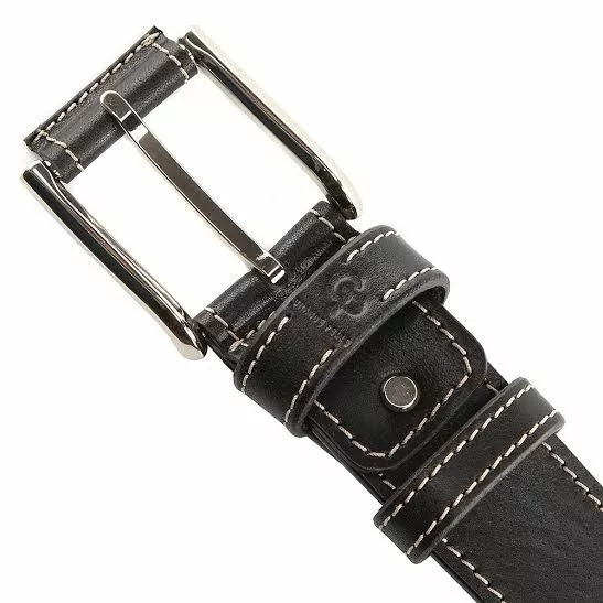 Роскошный мужской ремень изготовлен из высококачественной натуральной кожи. Стильный внешний вид ему придает черный цвет и классический дизайн, а также, симпатичная бляха. Современный высококлассный аксессуар для стильных мужчин.