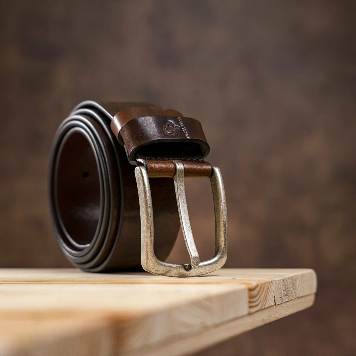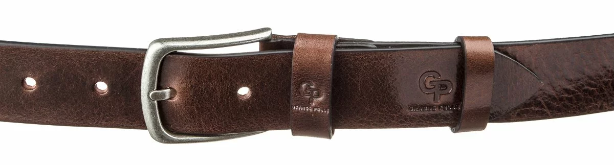 Мужской ремень коричневого цвета с ярким красноватым оттенком.