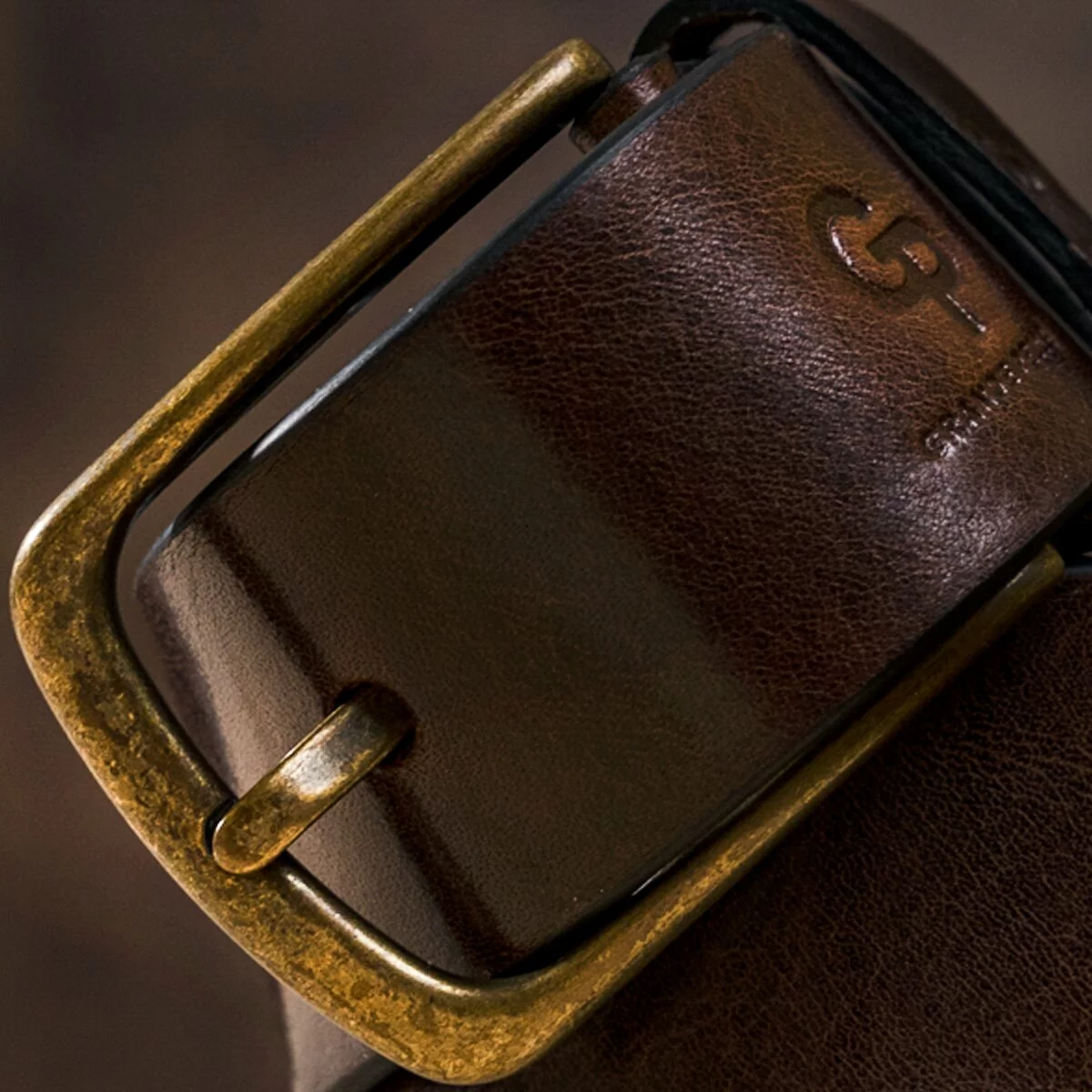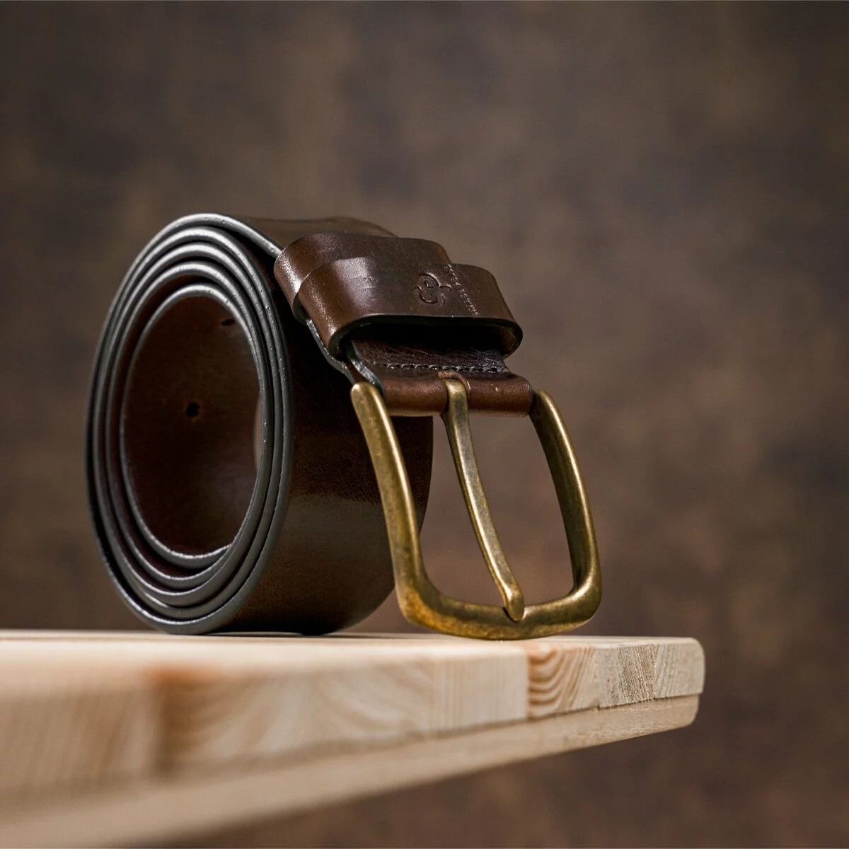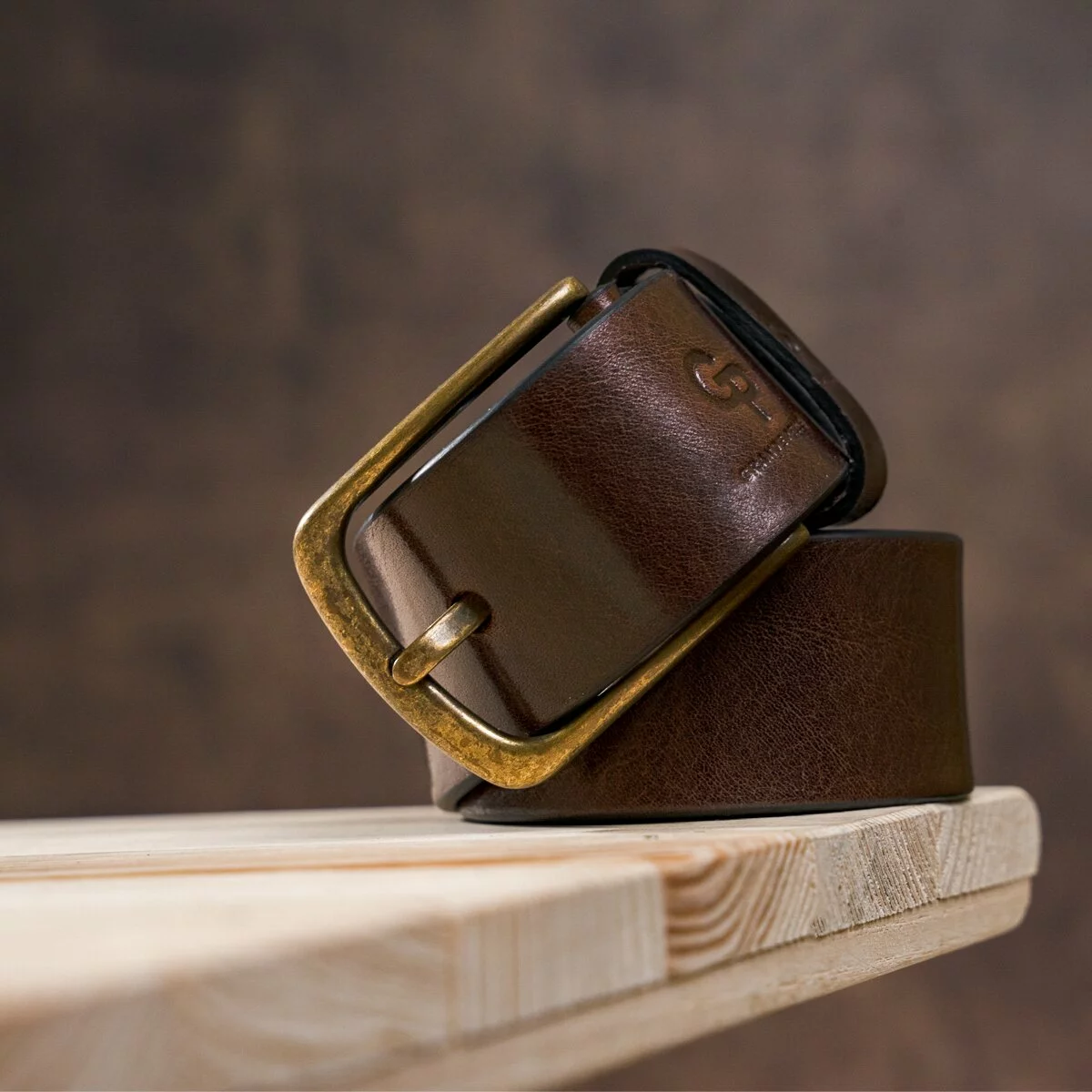 Кожаный мужской ремень с классической пряжкой коричневого цвета