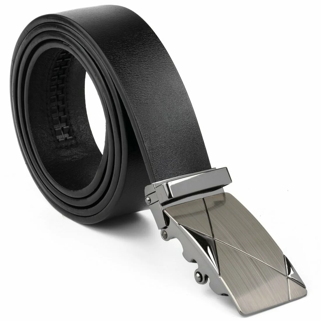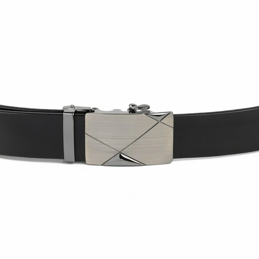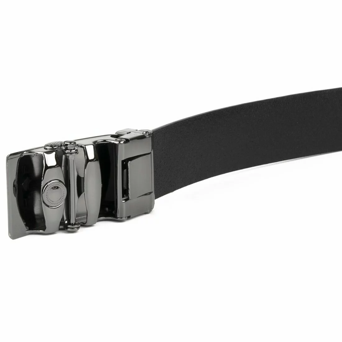 Черный мужской ремень с автоматической пряжкой. Изделие изготовлено