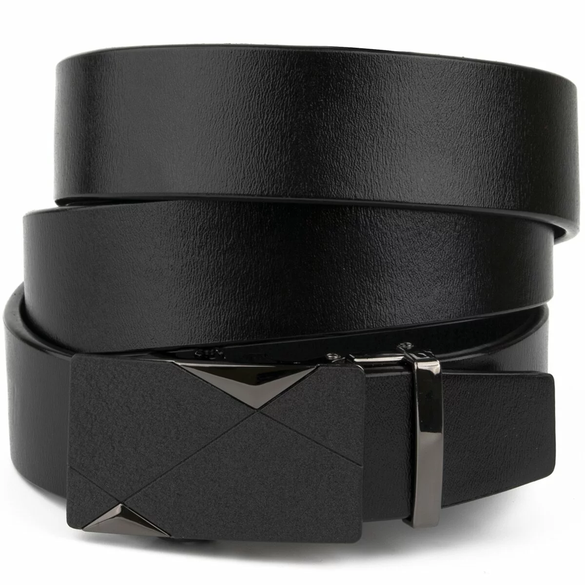 Мужской кожаный ремень классического черного цвета с черной матовой