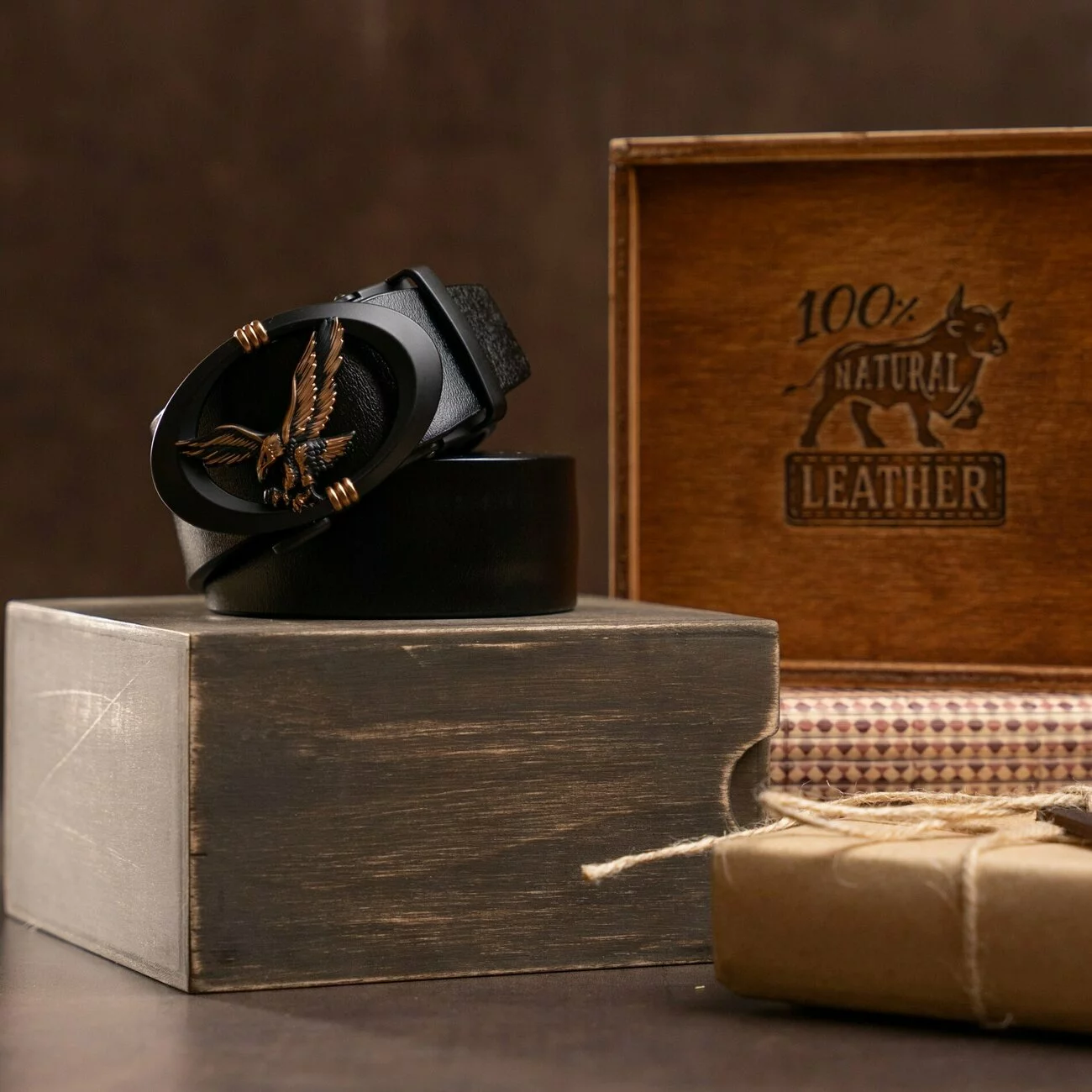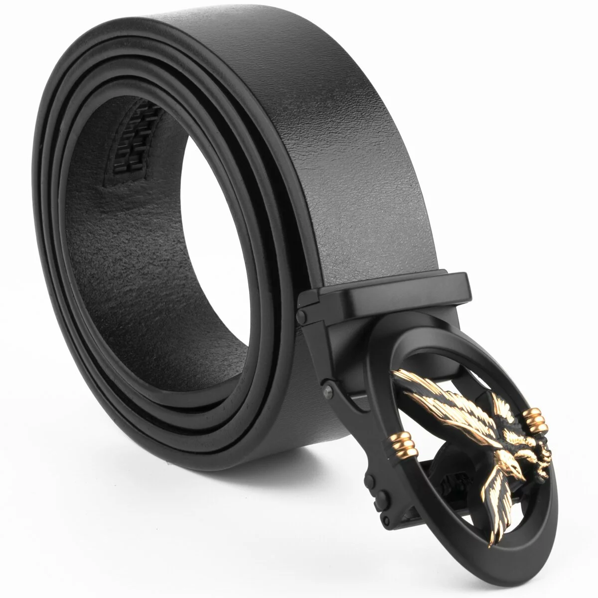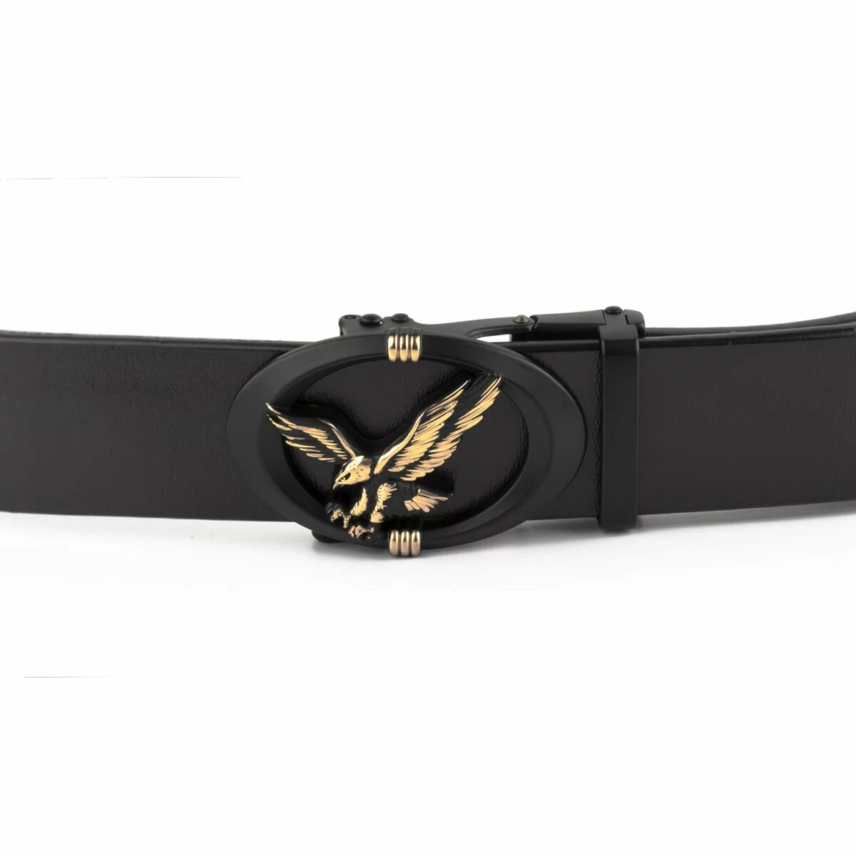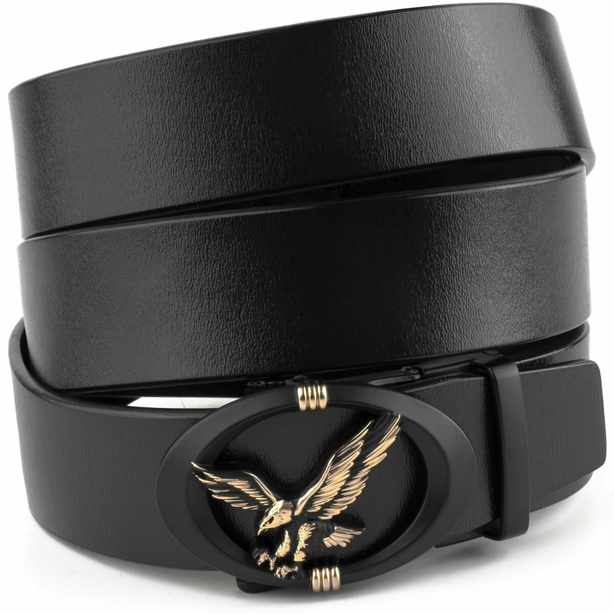 пряжкой черного цвета с силуэтом орла. Пряжка добавляет ремню