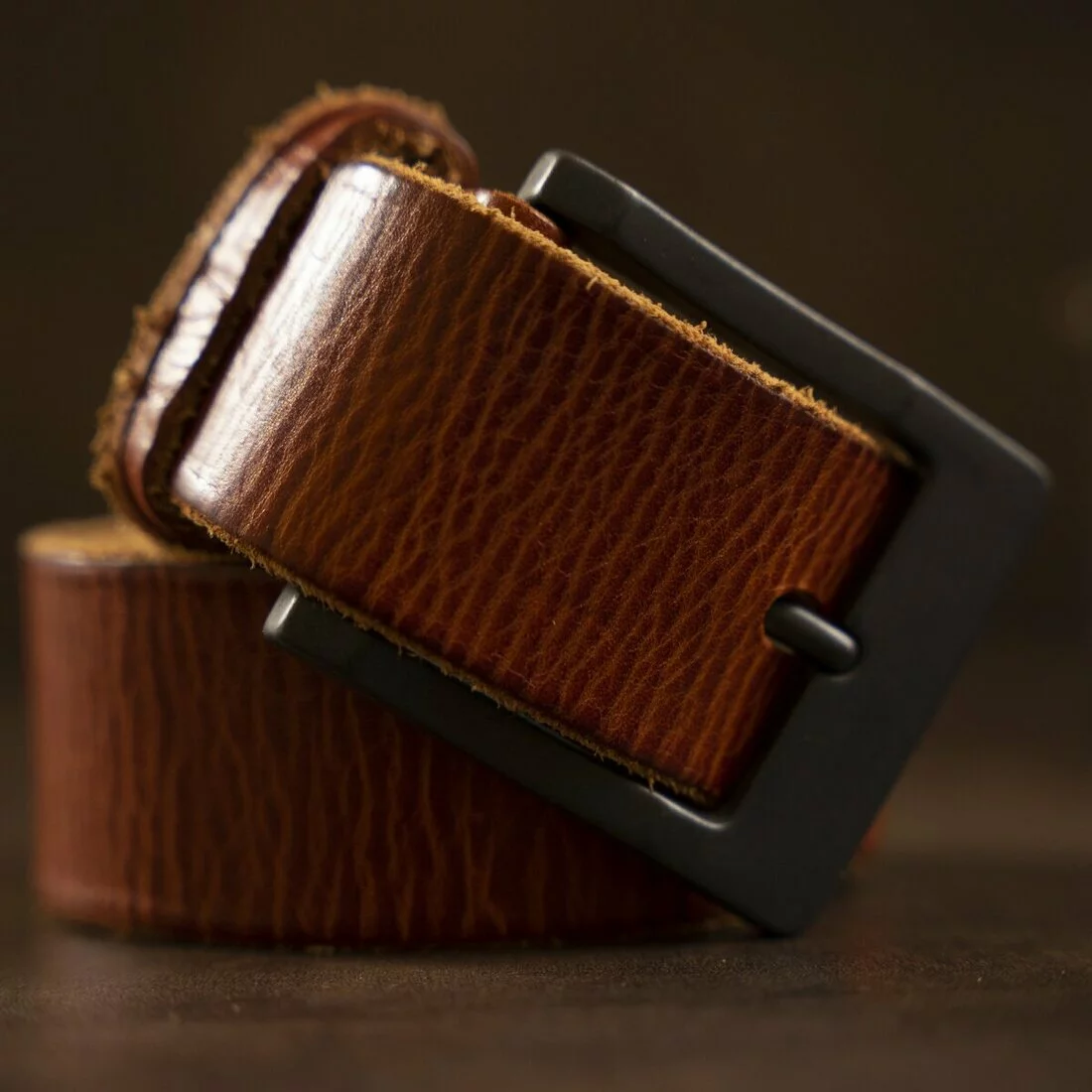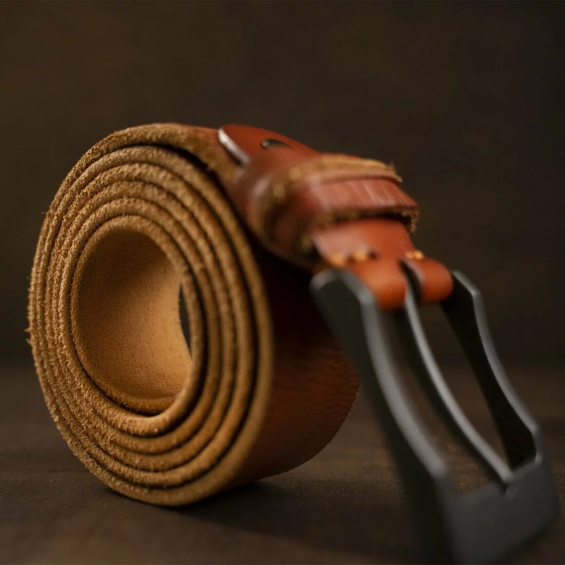 Стильный ремень из кожи. Ремень из плотной кожи. Дополнен