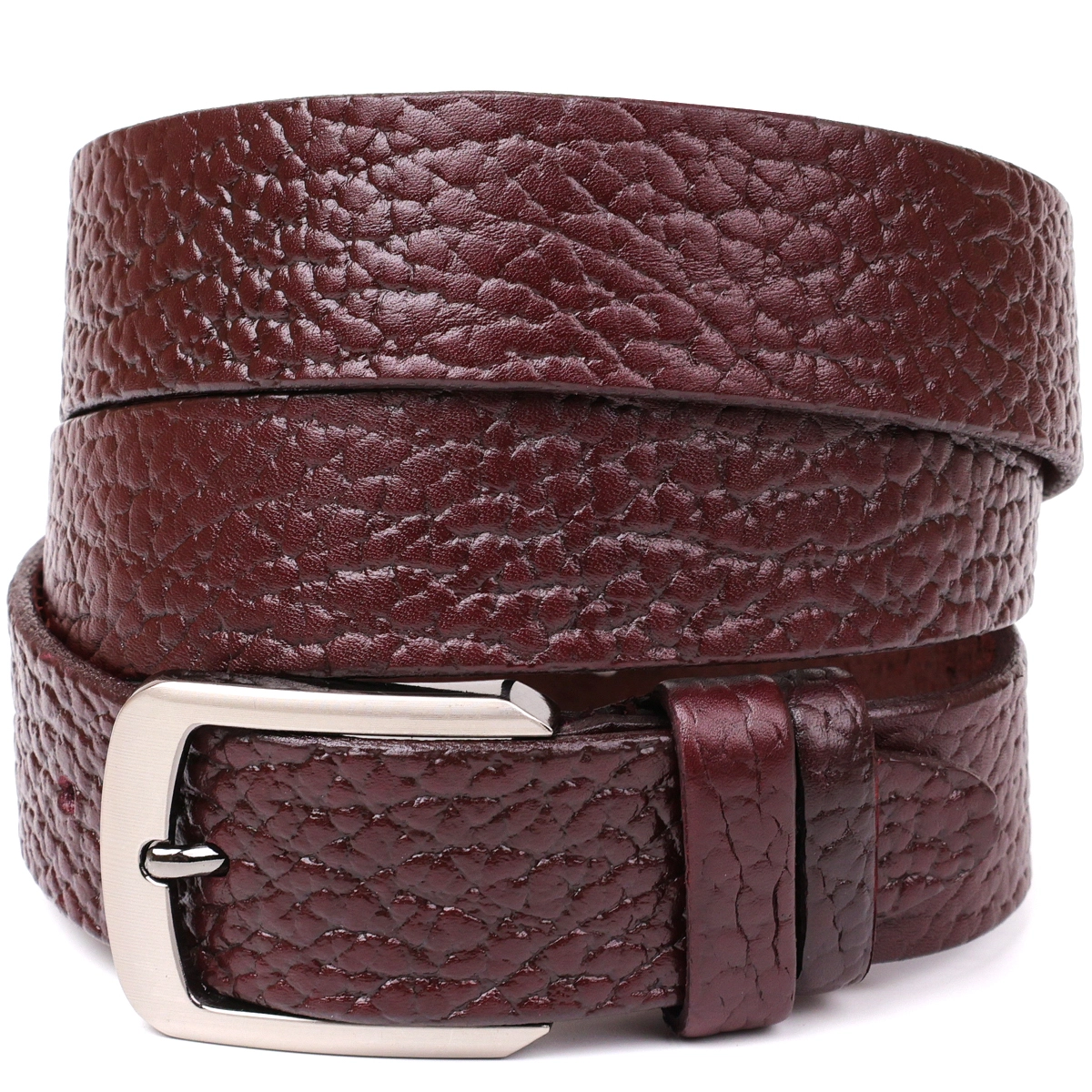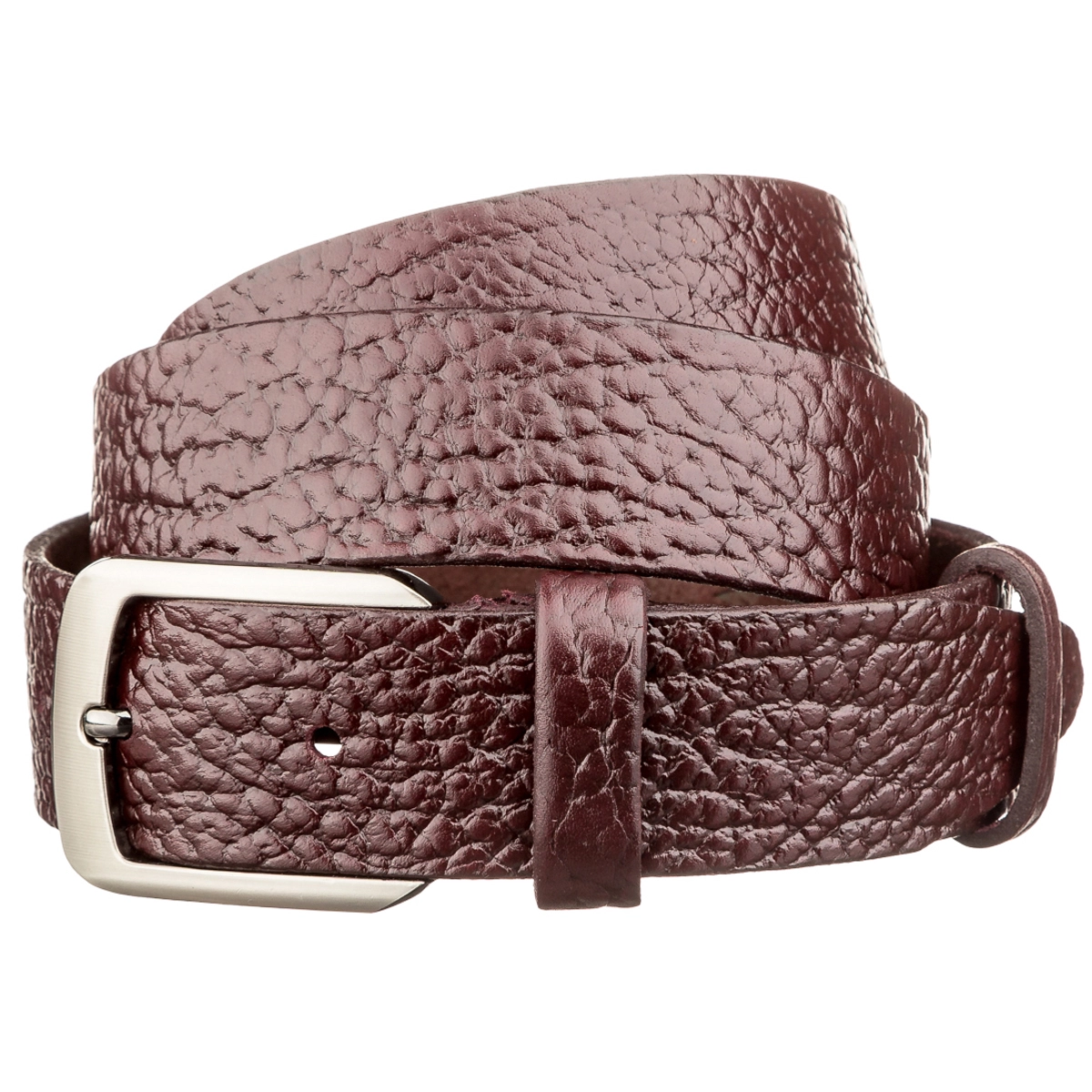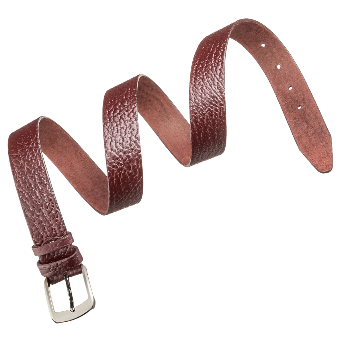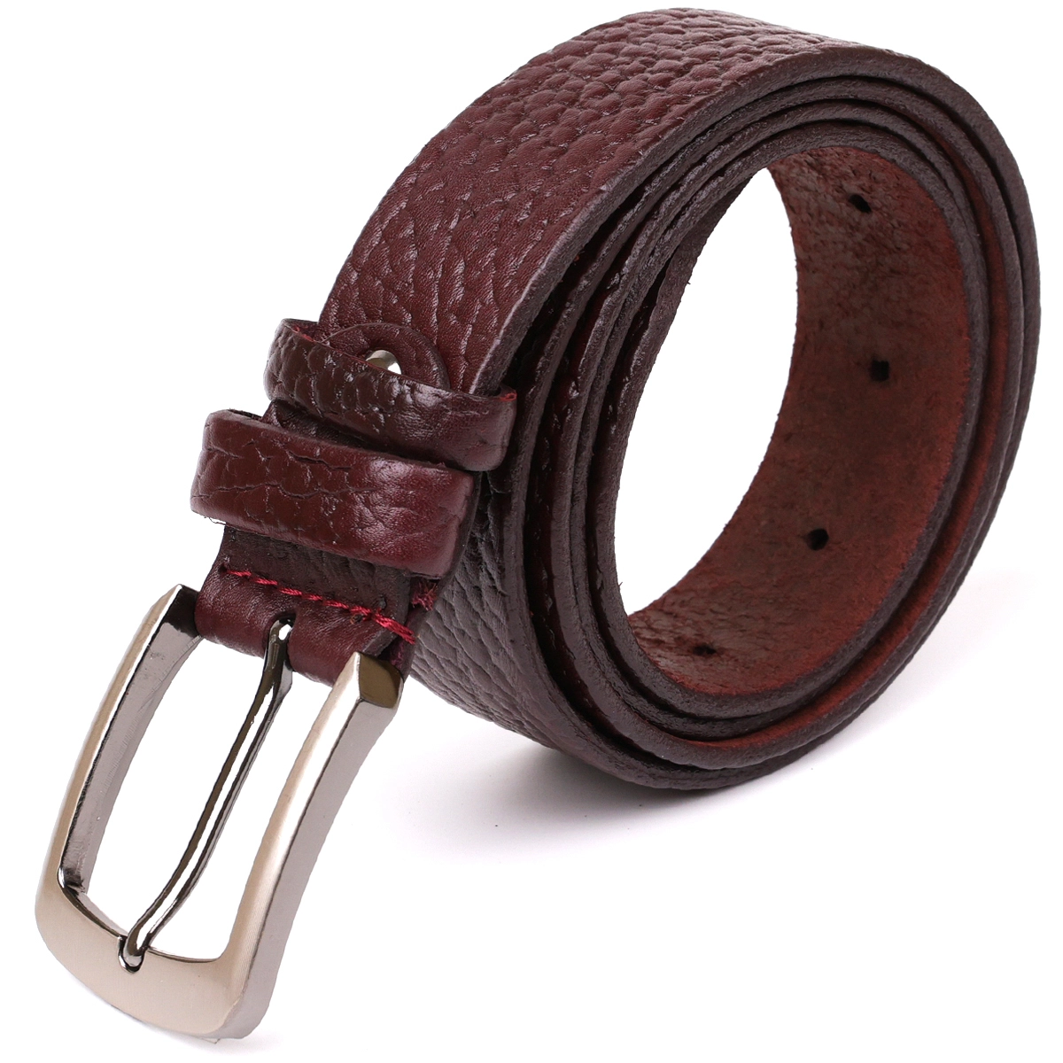 Кожаный ремень с тисненой поверхностью коричневого цвета. Модель