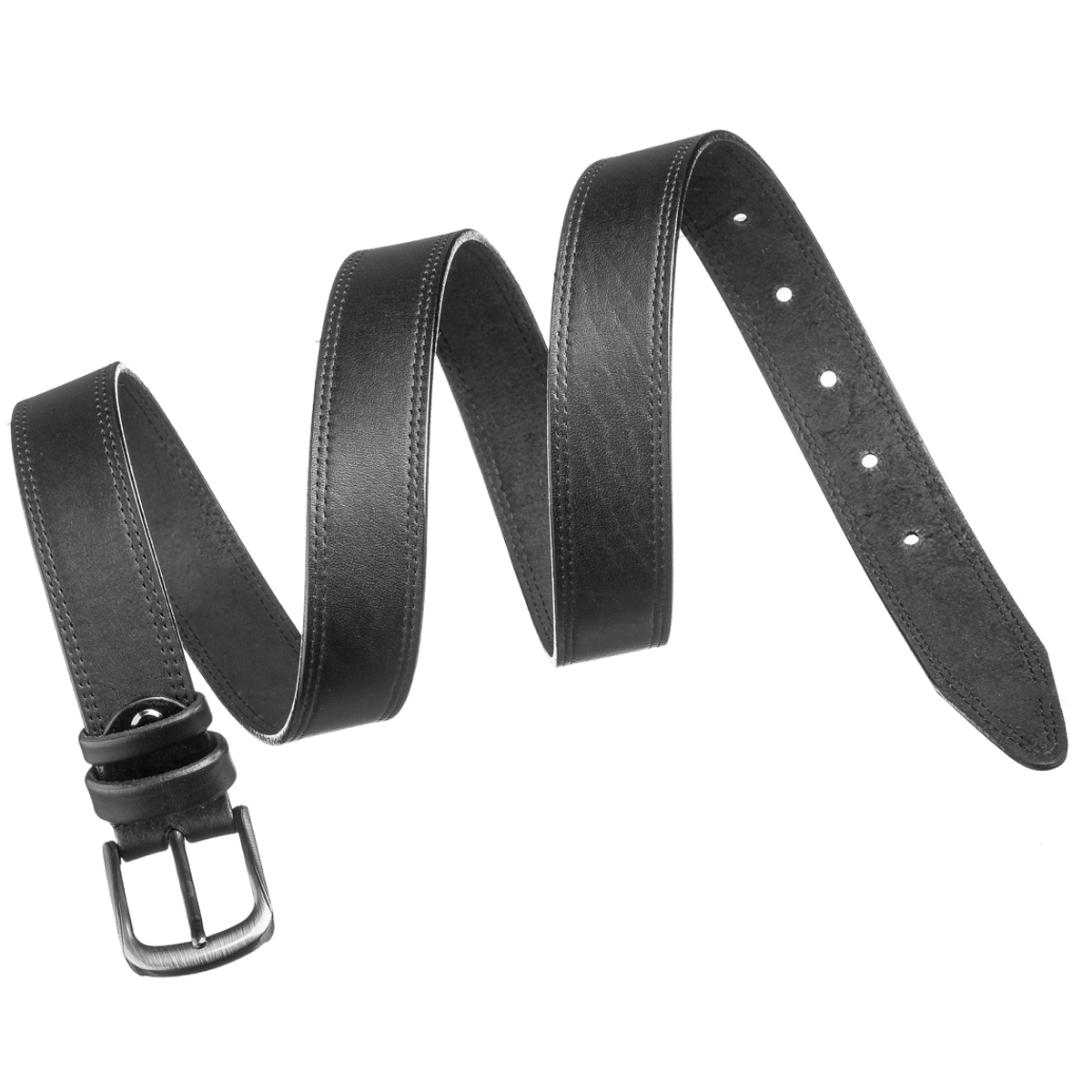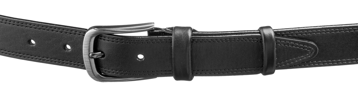 Поверхность ремня однотонная, черная, аккуратно оформлена строчкой