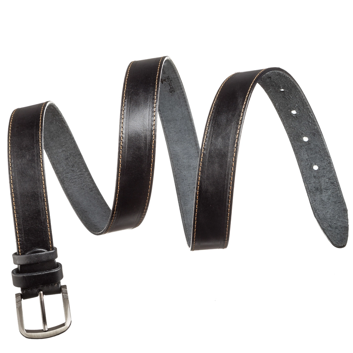 коричневой строчкой по краям. Пряжка выполнена в виде прямоугольной