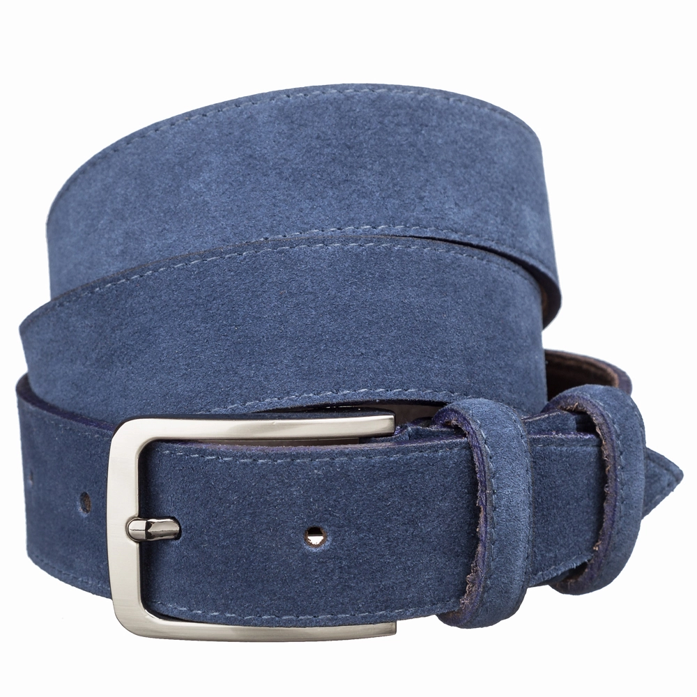 Роскошный замшевый ремень, синего цвета, изготовлен из