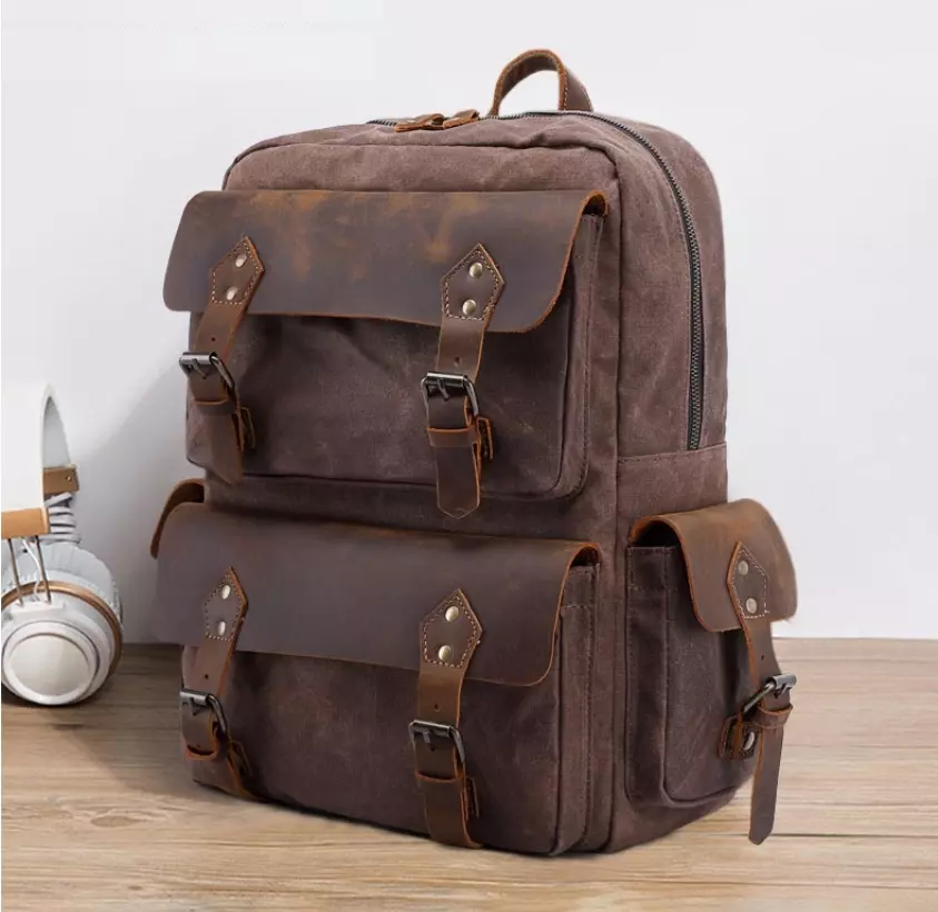 Вместительный текстильный рюкзак в сочетании с натуральной