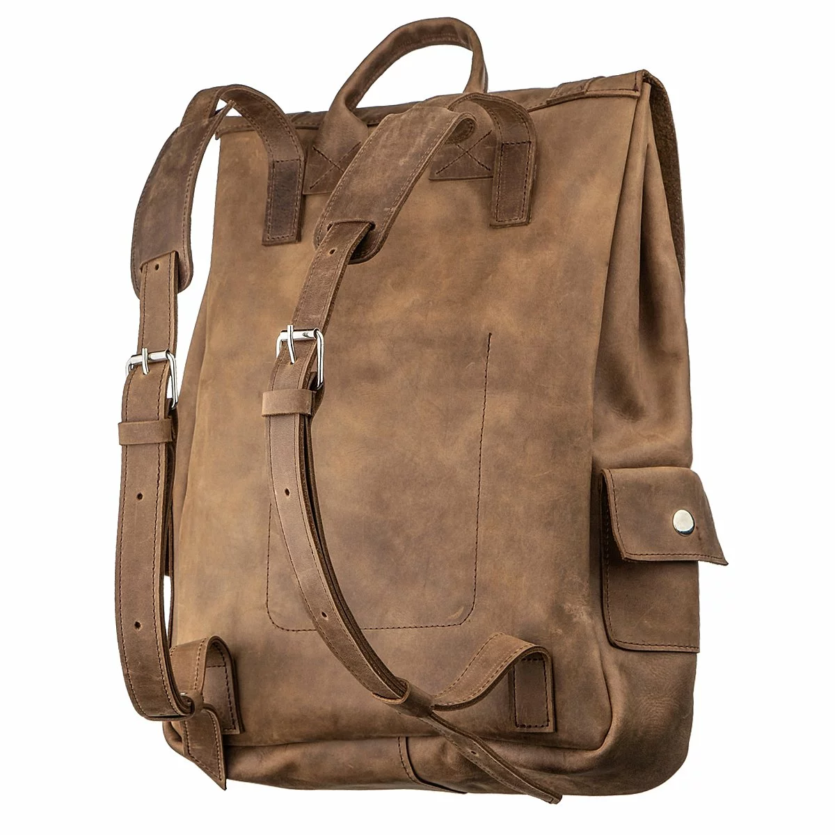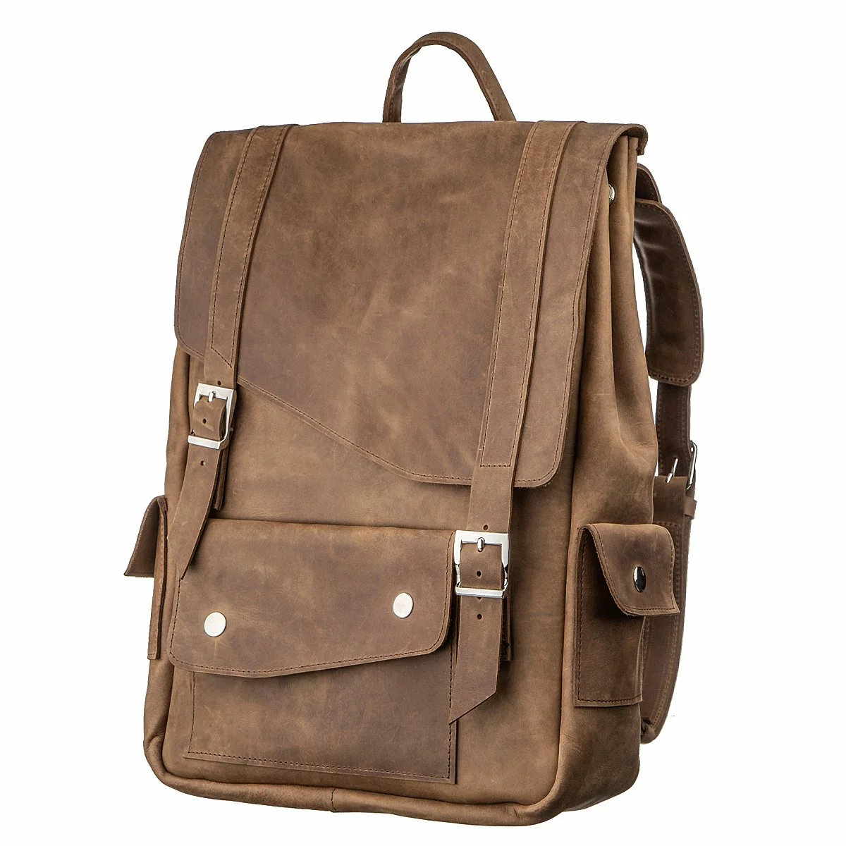 Удобный винтажный рюкзак как для города, так и для путешествия. В такой рюкзак вы можете вместить с собой ноутбук. Стоит обратить внимание, что в модели отсутствует подкладка. Внутри рюкзака тыльная сторона кожи. Аксессуар дополнен серебристой фурнитурой в дизайн. Рюкзак приятный на ощупь. Надежно прошит прочной нитью в темных тонах, которая придает аксессуару изюминку. Кожа, из которой выполнен рюкзак обладает особой популярностью среди многих клиентов. Ее выбирают за внешний вид, который меняется в лучшую сторону в процессе эксплуатации, покрываясь роскошными потертостями. Вы можете самостоятельно регулировать забитость рюкзака с помощью ремешков и кнопок в модели.