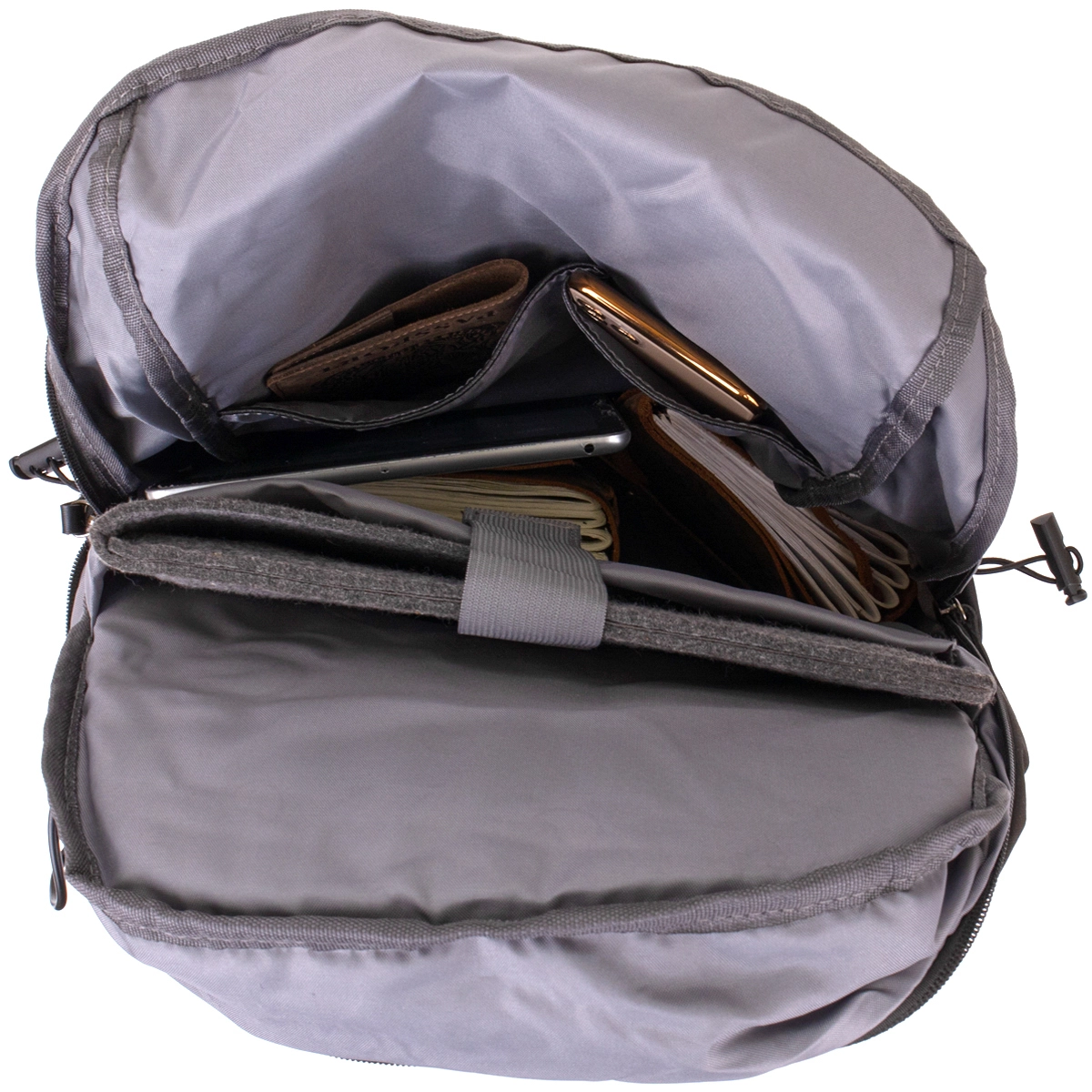 Закрывается рюкзак на молнию и имеет одно основное отделение.