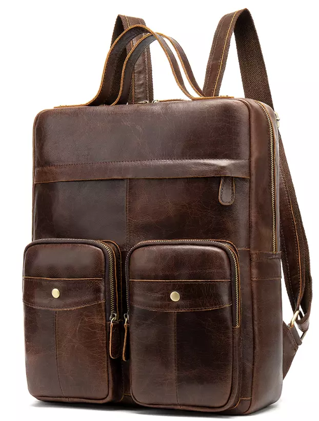 необходимые вещи в командировку или путешествие. Кожаный рюкзак