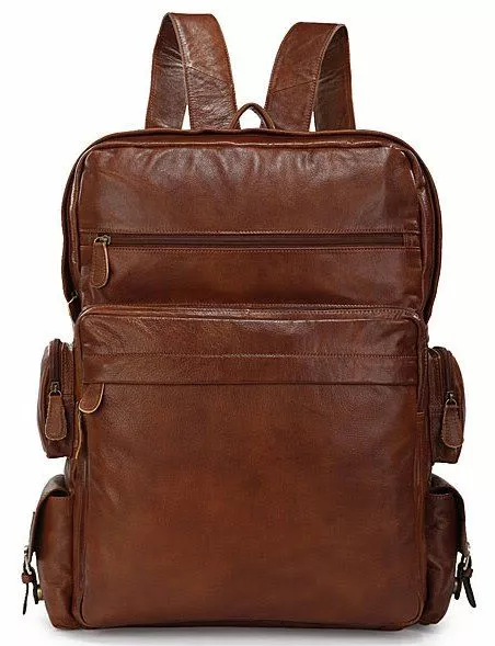 Большой рюкзак из натуральной кожи. Благодаря своим огромным размерам в такой аксессуар поместится практически все, что нужно для не длительной командировки или путешествия. Стильного внешнего виду аксессуару придает благородно коричневый цвет. Высокое качество пошива гарантирует длительный срок службы изделия.