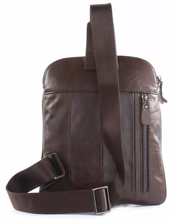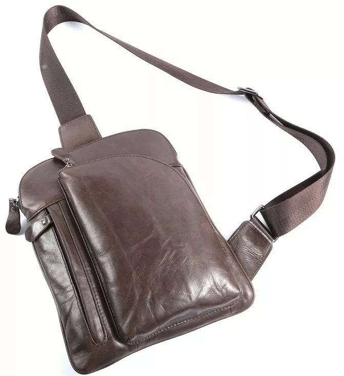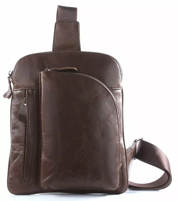 Компактная кожаная сумка через плечо. Цвет фурнитуры: черное серебро. Аксессуар имеет небольшие размеры, но при этом сумка достаточно практичная и функциональная. Подкладка изделия выполнена из текстильного материала приятного на ощупь. Цвет подкладки: коричневый. Такую небольшую сумку можно преподнести в качестве подарка мужчине ко Дню Рождения.