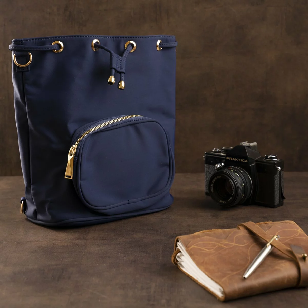 Современный женский рюкзак компактного размера на каждый день. Аксессуар имеет оригинальный классический дизайн, который не привязывает вас к определенному стилю. Модель дополнена блестящей золотистой фурнитурой и очень приятная на ощупь. В аксессуар легко поместится косметичка, деньги, ежедневник или любимая книга, а также другие необходимые женские мелочи. Очень хорошая модель на каждый день. Рюкзак выполнен из плотного нейлона и прослужит вам сравнительно долго. Несмотря на свой небольшой размер аксессуар очень вместительный и удобный. Рюкзак будет идеальным подарком для любой девушки.