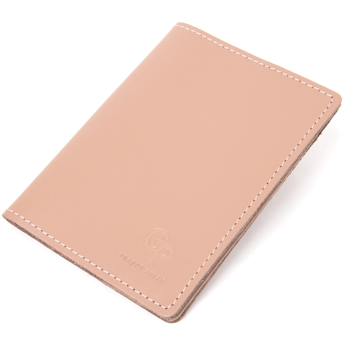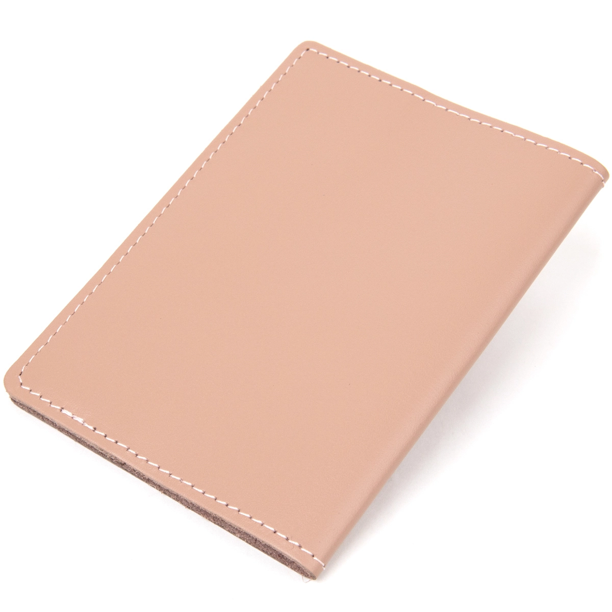 Красивая кожаная обложка на паспорт. Имеет нежный бежевый цвет с розовинкой, что смотрится очень стильно и оригинально. Кожа приятная на ощупь и имеет гладкую матовую фактуру. На лицевой стороне имеется фирменная надпись. Упакована в чехол