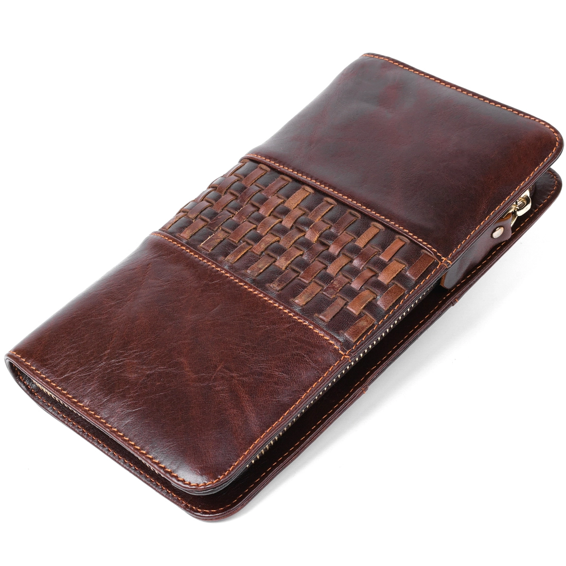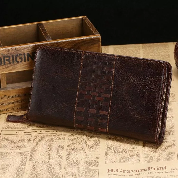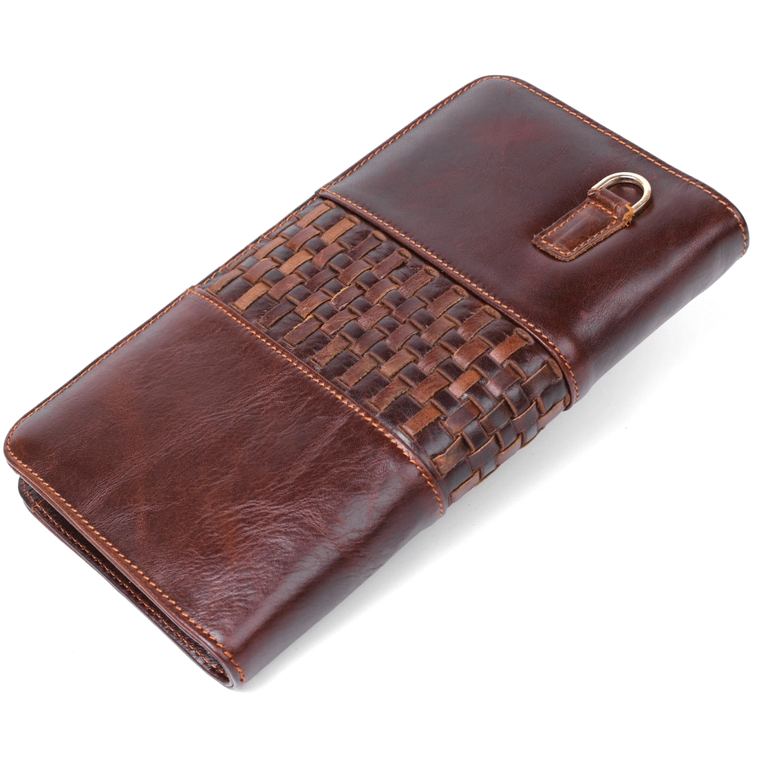 Великолепный мужской клатч барсетка изготовлен из натуральной кожи высокого качества. Уникальный внешний вид ему придает роскошный винтажный стиль, коричневый цвет, а также, оригинальный переплет на лицевой стороне. Состоит изделие из: