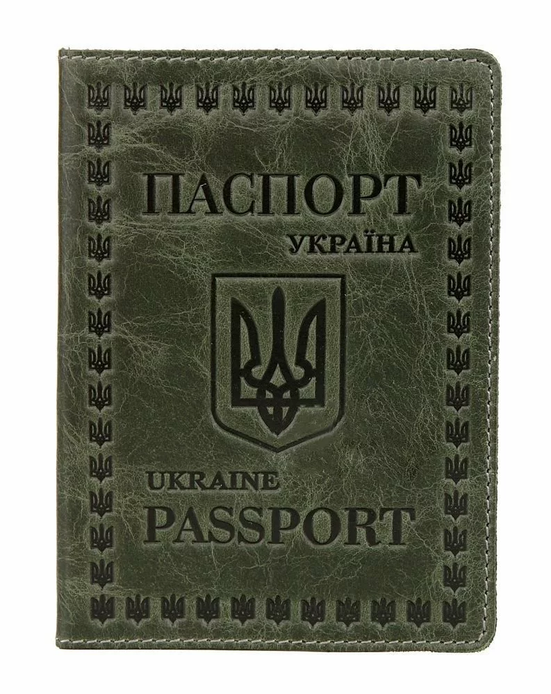 Шикарная обложка для паспорта, зеленого цвета с гербом Украина,